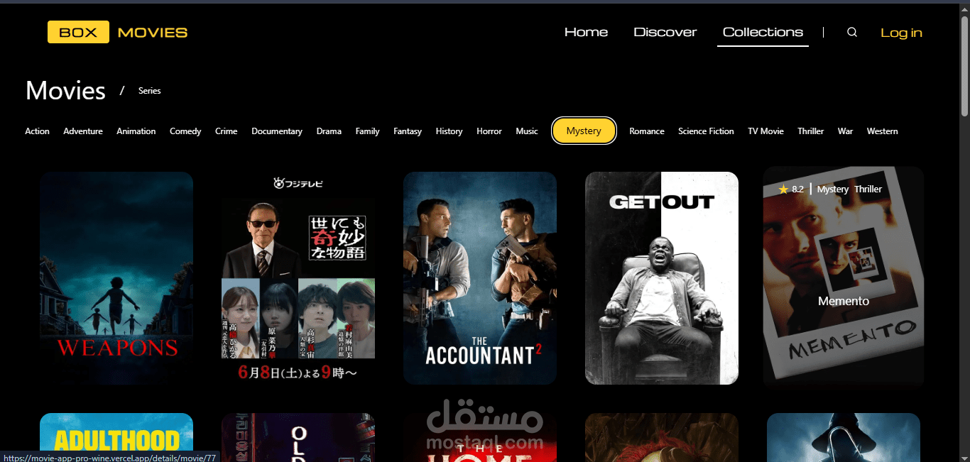 تطبيق الأفلام (Movie App) — منصة عصرية، ديناميكية، ومتجاوبة بالكامل لاكتشاف الأفلام والمسلسلات والنجوم، مستوحاة من TMDB!