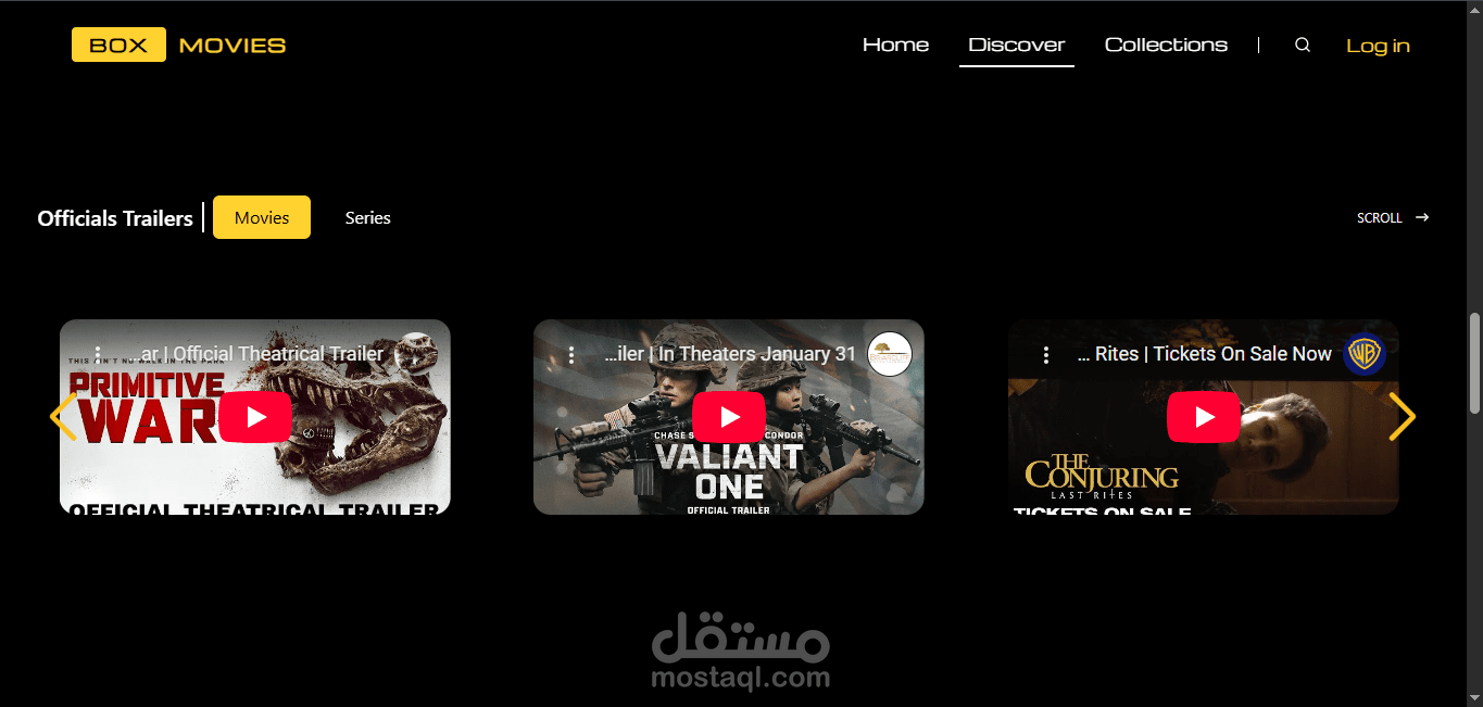 عرض تريلرات يوتيوب داخل التطبيق عبر iframe لإحساس سينمائي واقعي.