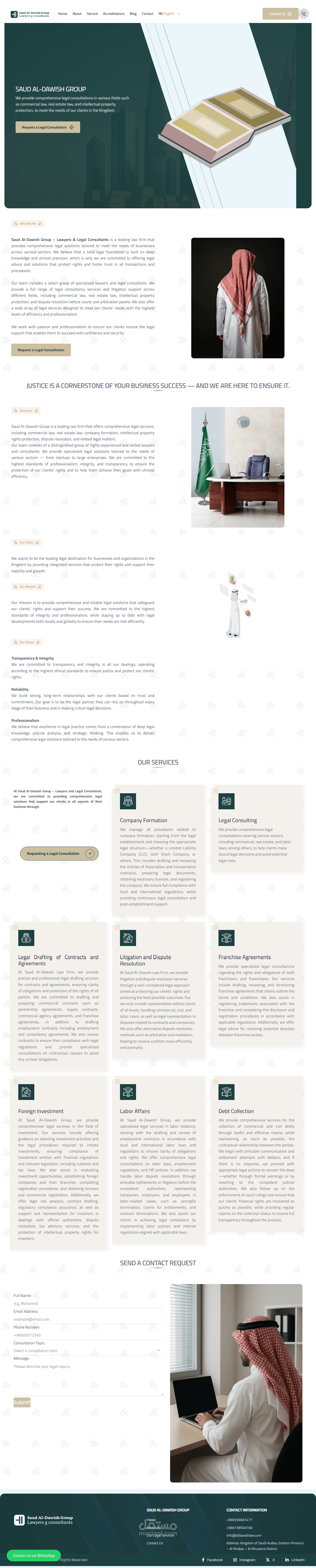 مسؤول عن إنشاء وتخصيص موقع ثنائي اللغة (عربي – إنجليزي) لمكتب محاماة في السعودية مع تصميم متجاوب.