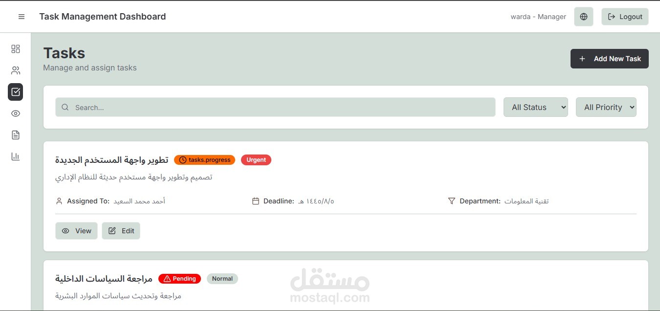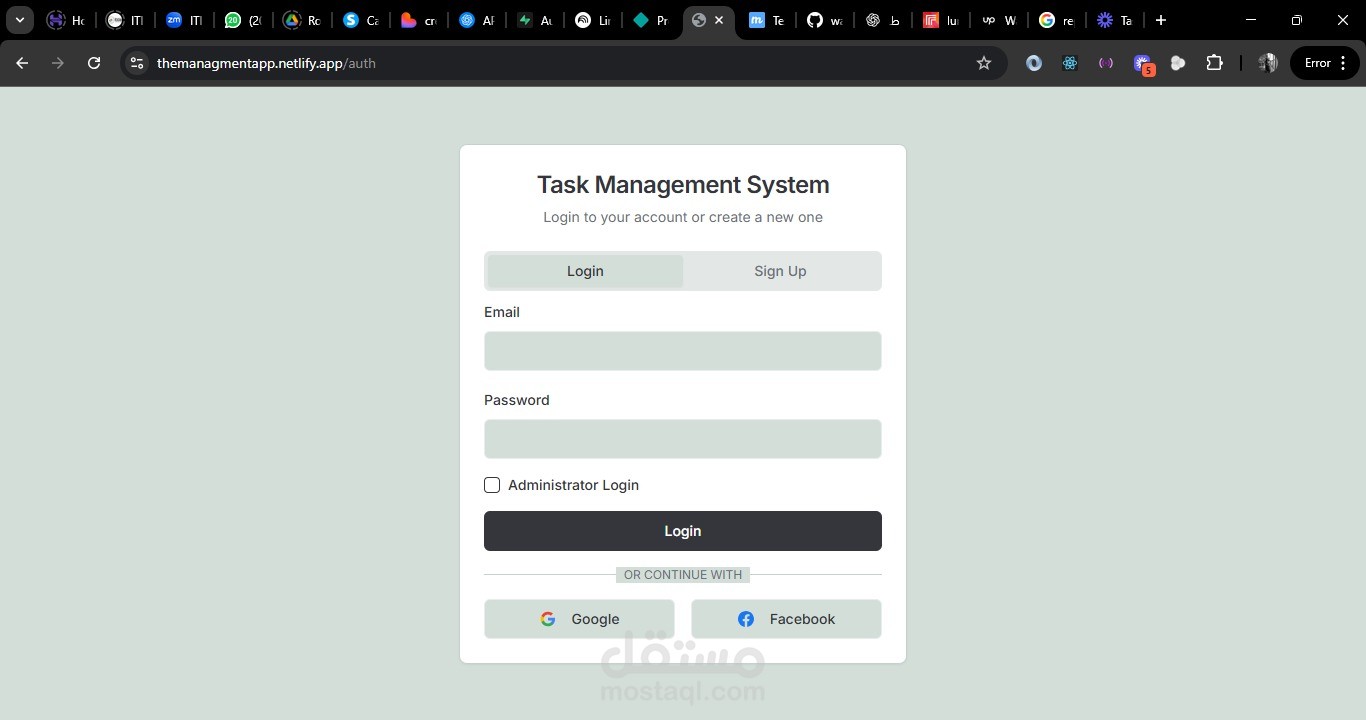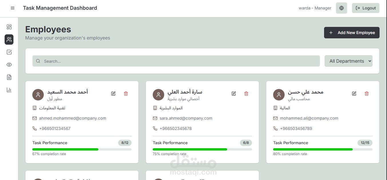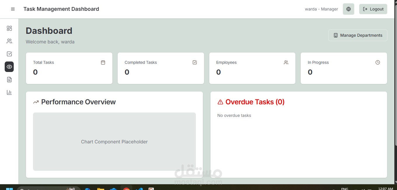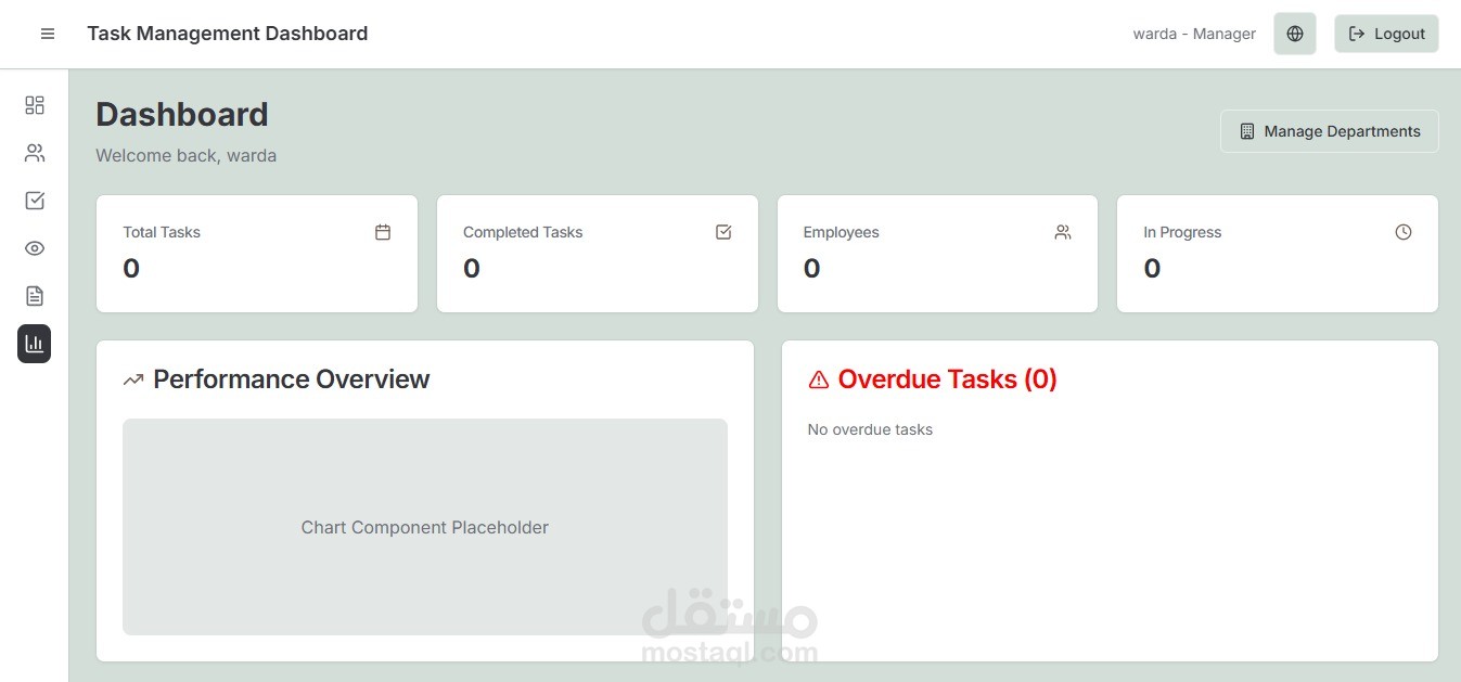 The Task Management System is a web-based application designed to help organizations efficiently manage employees, tasks, and departmental performance. The system provides both administrators and employees with an intuitive dashboard to track progress, improve collaboration, and ensure accountability.