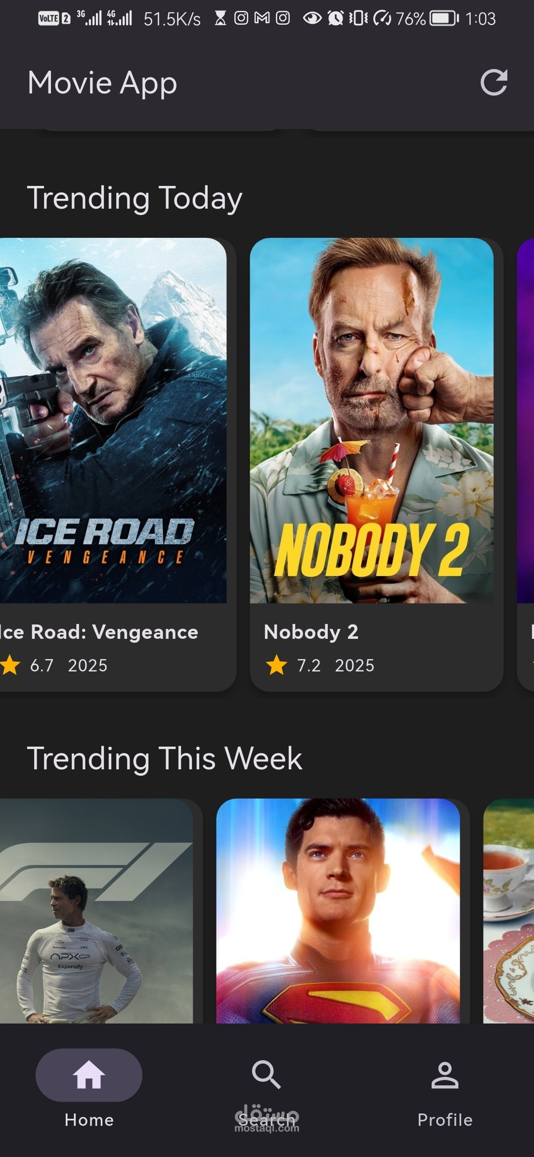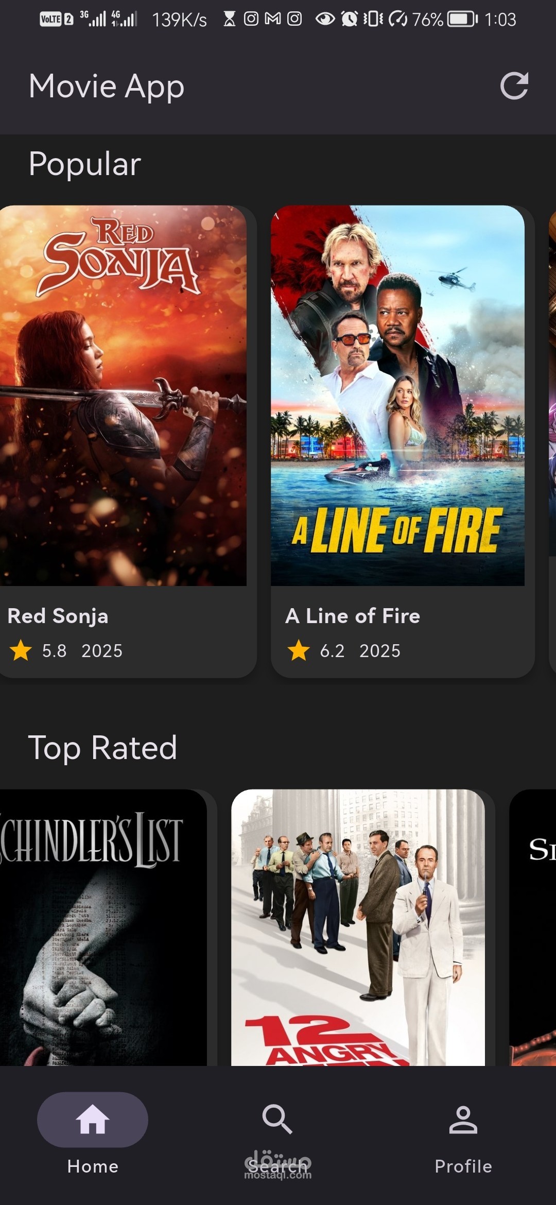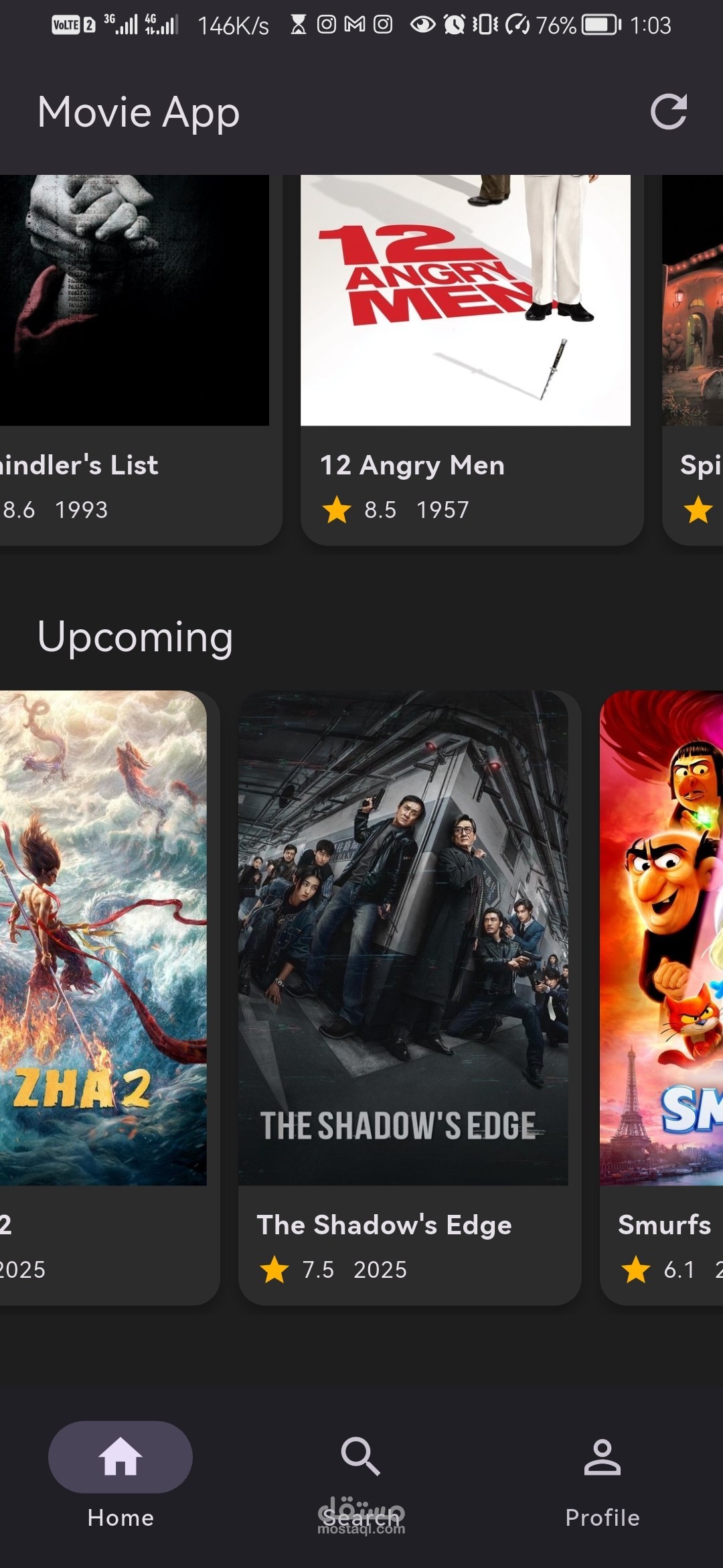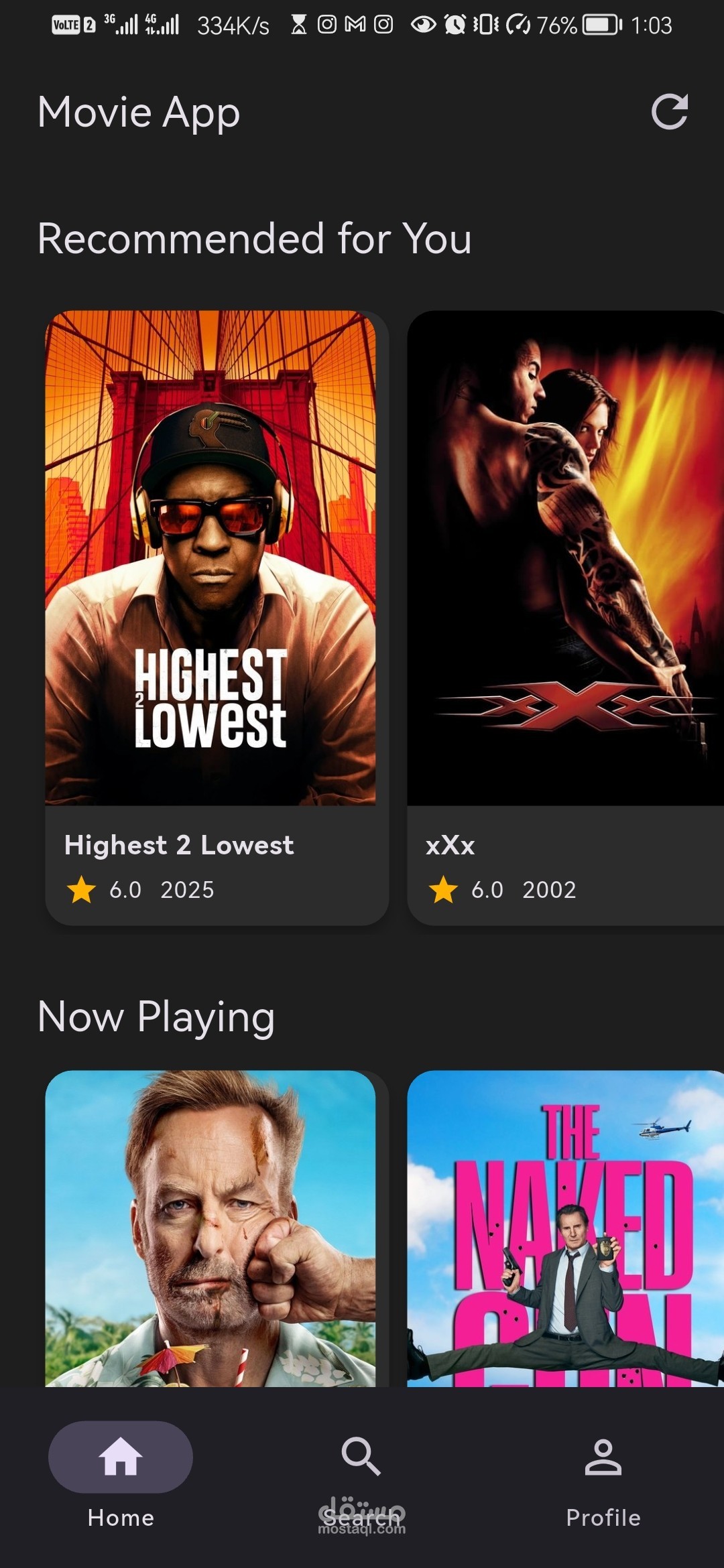 تطبيق ترفيهي لاقتراح الأفلام باستخدام Flutter ودمج TMDB API. يتيح للمستخدم اختيار أنواع الأفلام المفضلة (أكشن، كوميدي، …) ليحصل على ترشيحات مخصصة. التطبيق يحتوي على تسجيل حسابات، عرض تفاصيل الأفلام (ملخص، تقييمات، صور)، بالإضافة إلى إضافة تقييمات النجوم والتعليقات وعرض قائمة الأفلام المفضلة للمستخدم في بروفايله.