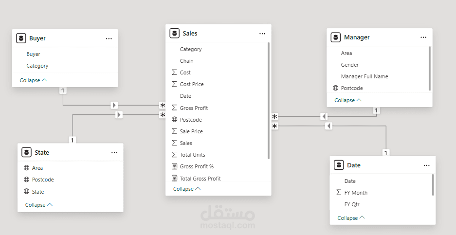 Data Modeling – لربط الجداول بين المبيعات والعملاء والمديرين والمنتجات