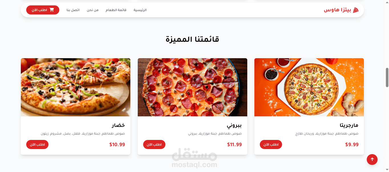 هذه الصفحة تعكس صورة احترافية للمطعم وتجذب العملاء لطلب البيتزا بسهولة وسرعة.