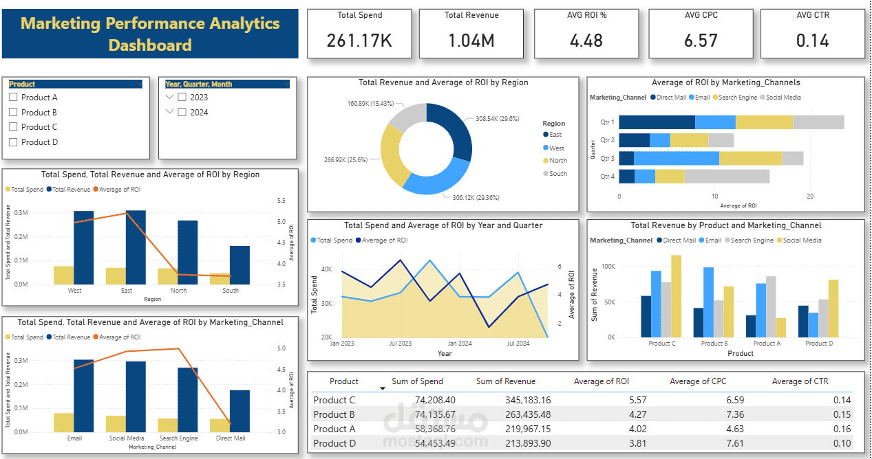 هذا الداشبورد يحول البيانات التسويقية المعقدة إلى قصة واضحة، مما يسمح للشركة بتحديد نقاط القوة والضعف في استراتيجياتها التسويقية وتخصيص الموارد بكفاءة أعلى لتحقيق أقصى نمو ممكن.