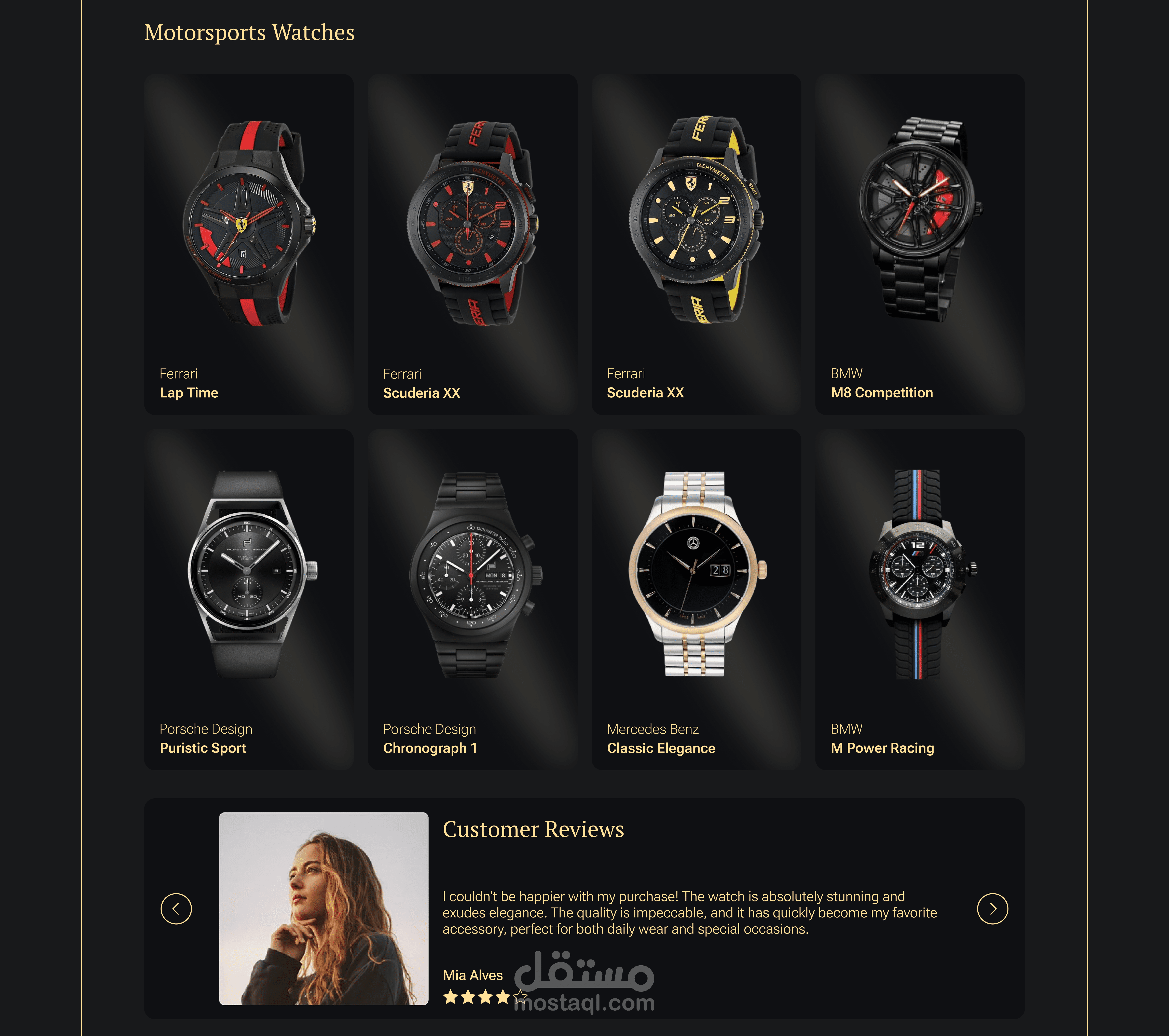 في التصميم ، كان هدفي هو ابتكار تجربة رقمية تعكس الرقي والفخامة والتميز المرتبط بعالم الساعات الفاخرة.