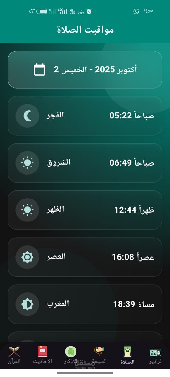 تطبيق إسلامي شامل يحتوي على: القرآن الكريم، أوقات الصلاة، الأذكار، وواجهة متجاوبة.