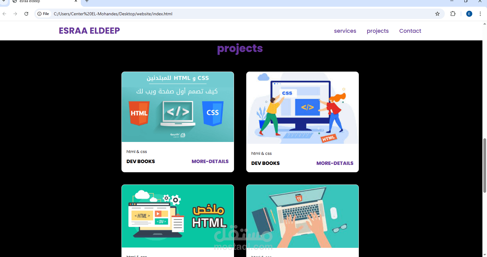 "This is a personal website built using HTML and CSS. It showcases my profile, contact information, as well as my main projects and the courses I have completed."