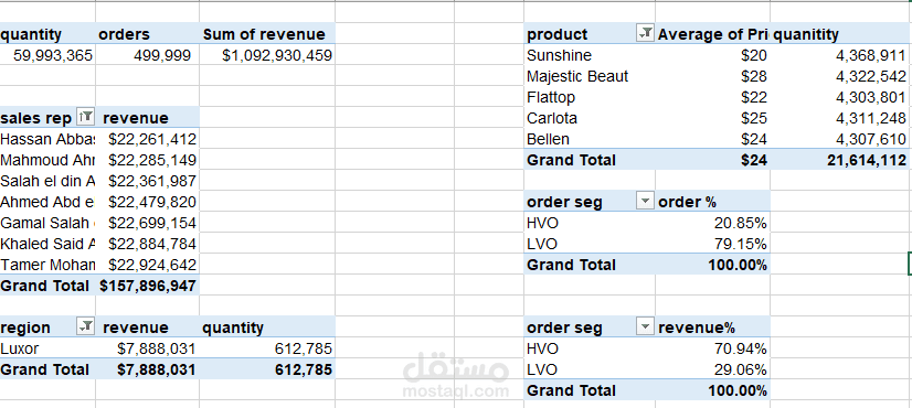 أنشأت جداول PivotTables ورسوم بيانية لتلخيص أهم المؤشرات ومتابعة الأداء.