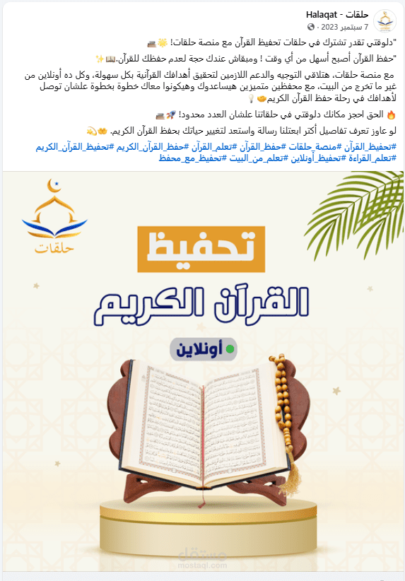 إدارة حملات تسويقية عبر فيسبوك: ركّزت على استهداف فئات مختلفة داخل مصر وخارجها لإبراز الأكاديمية كخيار موثوق لتعليم القرآن عن بُعد.