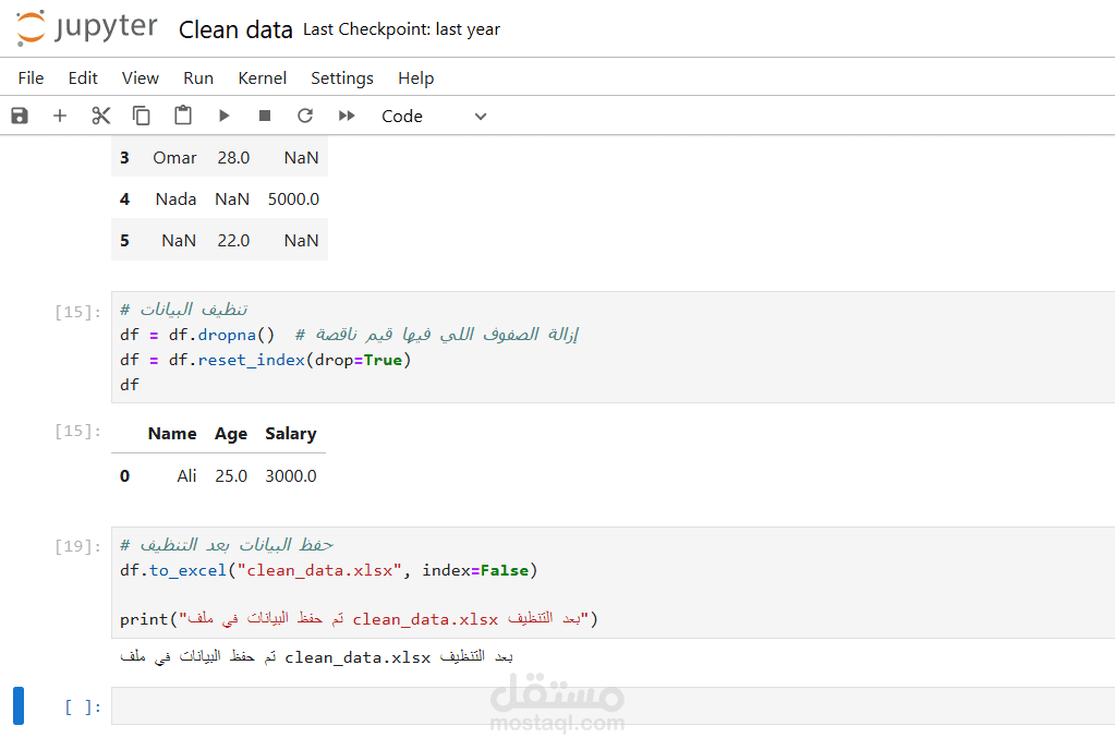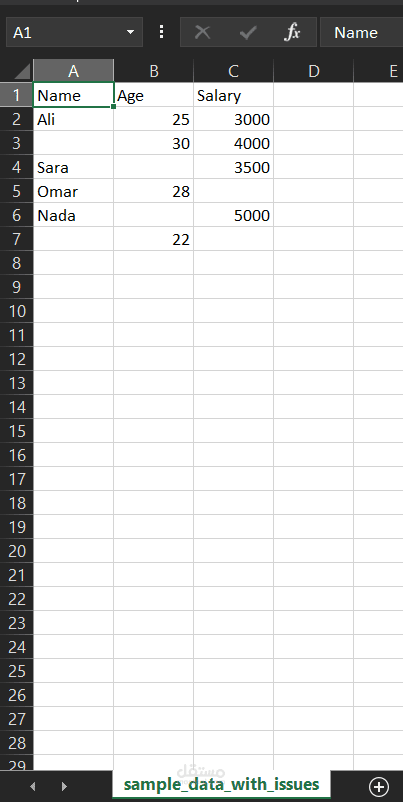 قمت بتنظيف بيانات غير مكتملة من ملف CSV باستخدام Python، ثم حفظتها في ملف Excel منظم جاهز للتحليل والاستخدام.