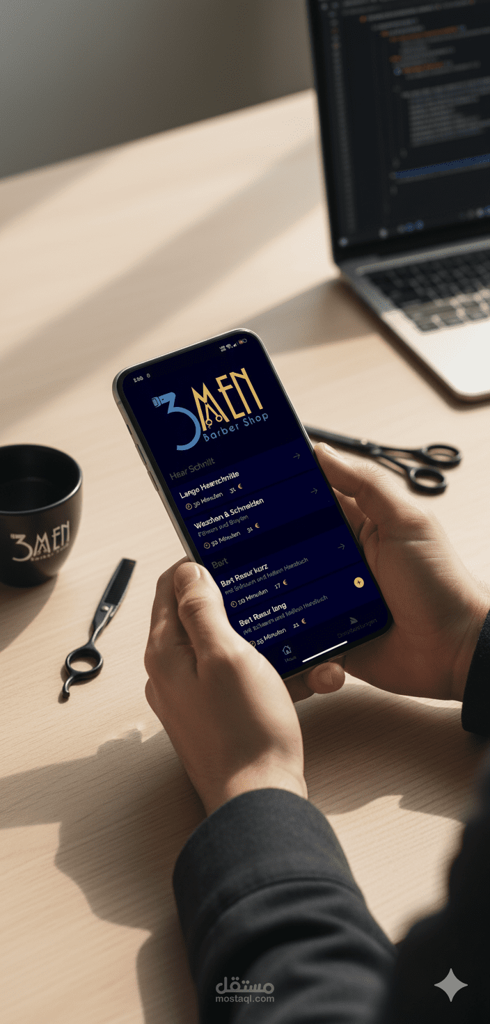 قمت بتطوير منصة حجز مواعيد احترافية ومتكاملة باستخدام إطار عمل Flutter (لكل من Android و iOS) خصيصًا لصالون حلاقة ألماني يحمل اسم "3 Men Barber Shop". يهدف المشروع إلى رقمنة عملية حجز المواعيد بالكامل وتحسين تجربة العميل وتبسيط مهام الإدارة.