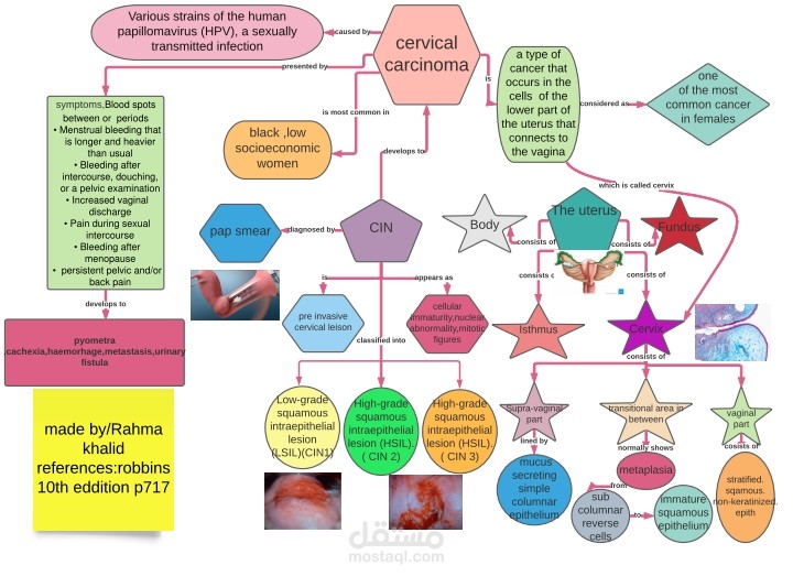 هذه خريطة ذهنية عن سرطان عنق الرحم توضح كل المعلومات عنه بشكل جذاب ومبتكر من تصميمى لتجعلك تتذكر المحتوى بشكل جيد وتفهمه بكل سهولة