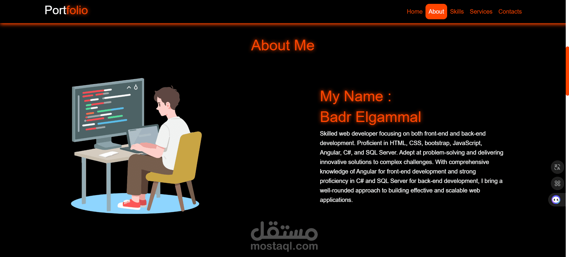 سأقوم بتصميم وتطوير موقع شخصي (Portfolio Website) حديث ومتجاوب يحتوي على: