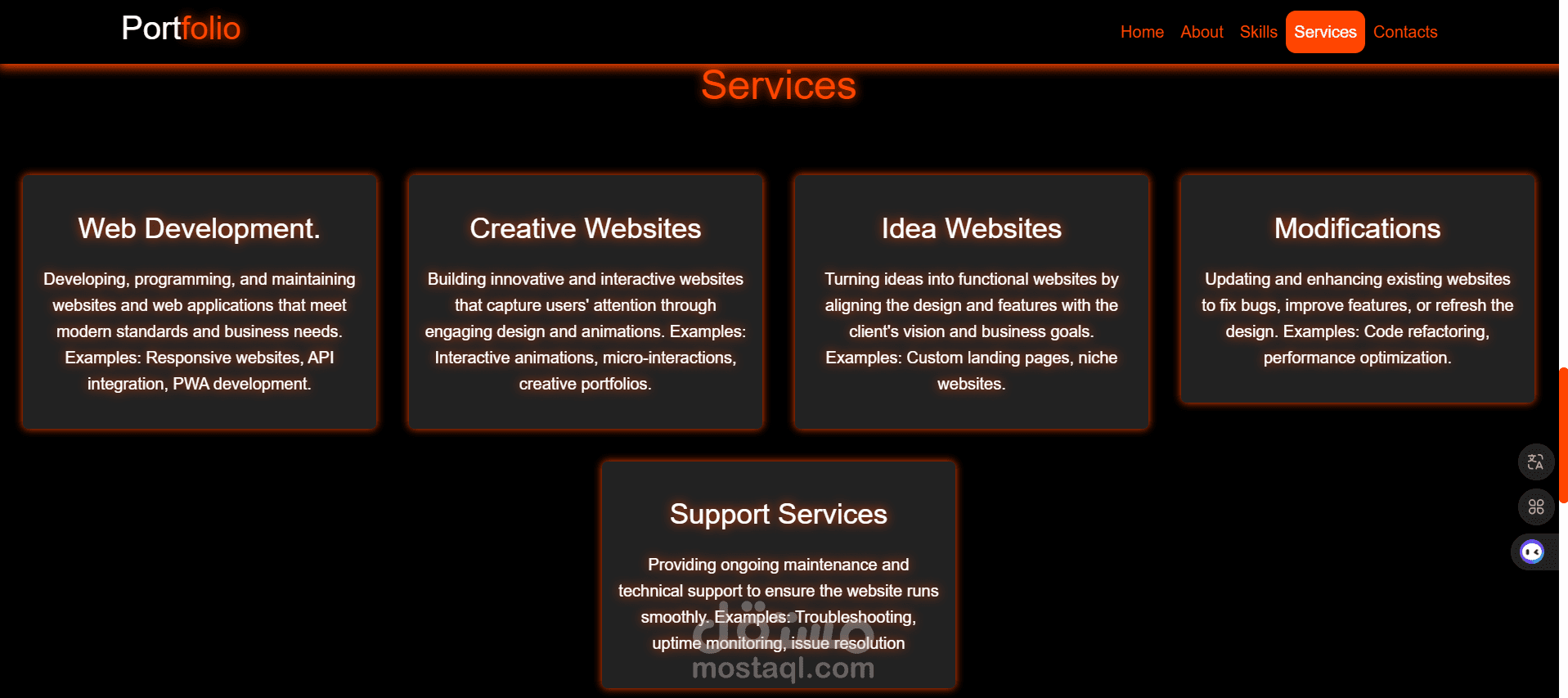 قسم التواصل (Contact Me) مع فورم يرسل مباشرة لبريدك الإلكتروني.