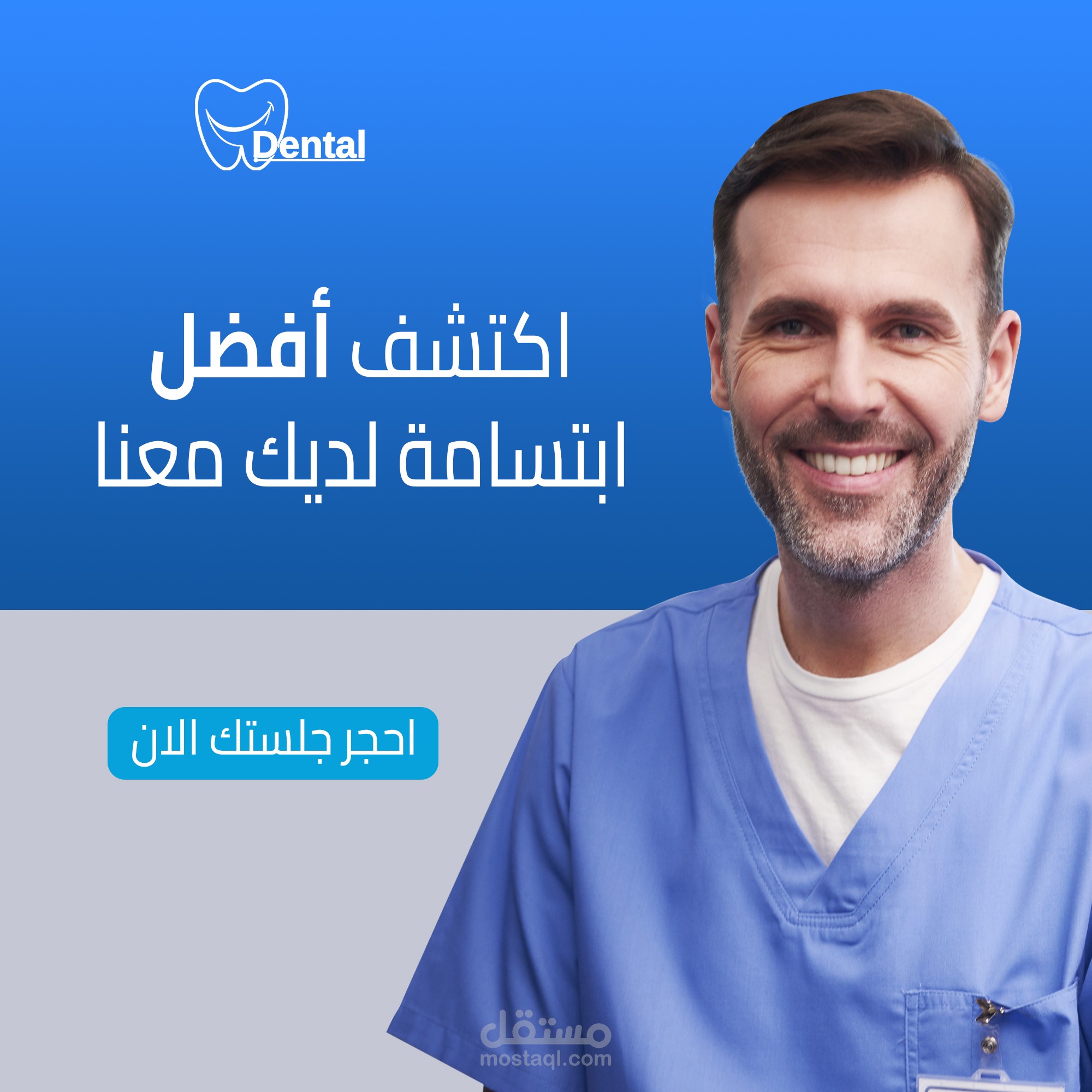 توزيع مدروس للعناصر البصرية مع وجود مساحات واضحة مخصصة للعنوان، العروض الترويجية، وشعارات العيادة.