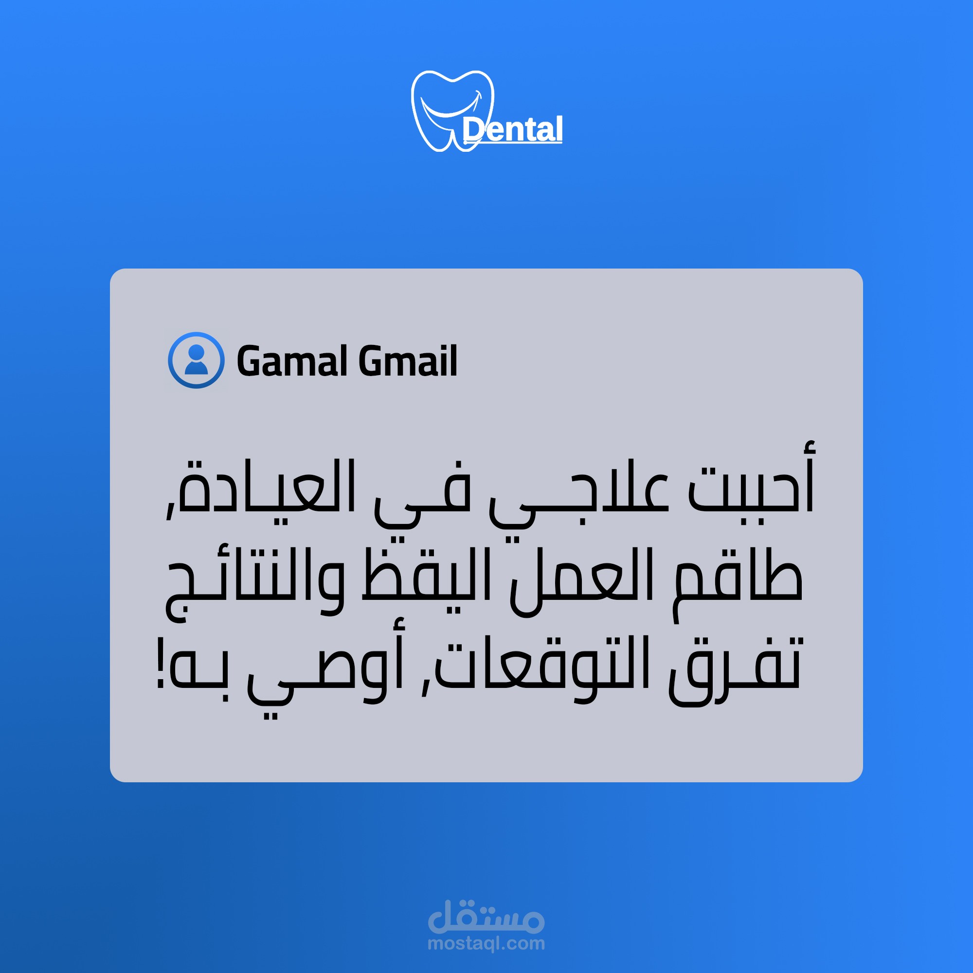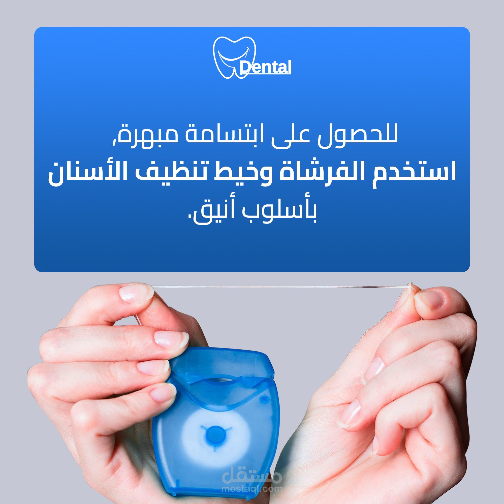 إدراج أيقونات ورسومات متعلقة بطب الأسنان مثل (ابتسامة – سن – فرشاة أسنان – أدوات طبية)، لتعزيز هوية العلامة البصرية.