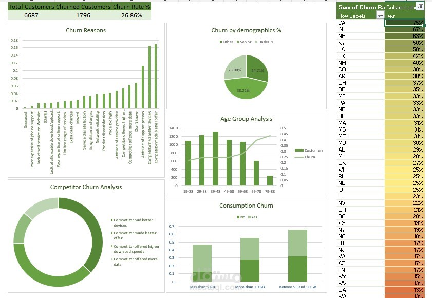 عمل حملات تسويقية مستهدفة لتقليل churn في الولايات الأكثر تضررًا.