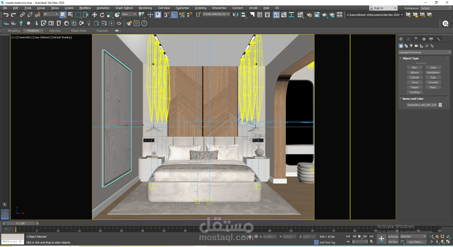 هذا العمل يندرج تحت مجال التصميم الداخلى ومن اهم ميزاته انه واجهتنا مشكلة فى طريقة فرش الغرفة بسبب النوافذ والفتحات الموجودة بالغرفة ولكن تم حل هذه المشكلة عن طريق عمل ميكانيزم جرار خلف السرير على الشباك وبشكل ابداعى ومتميز