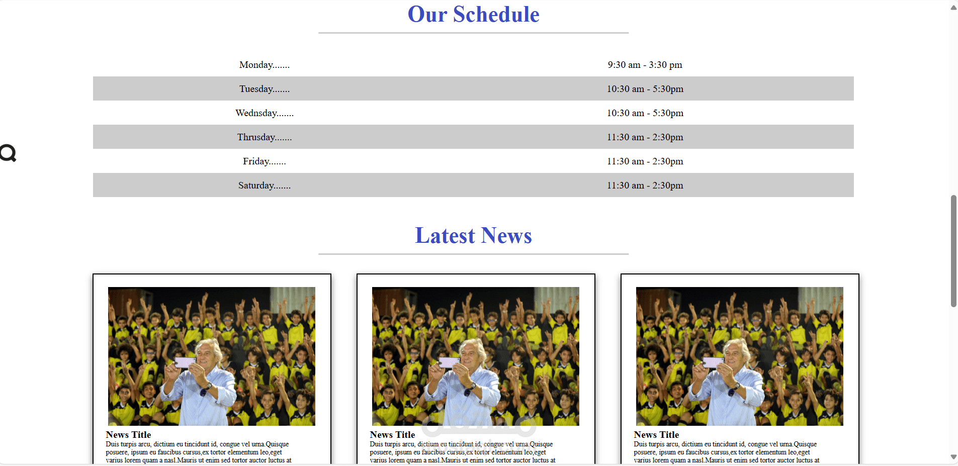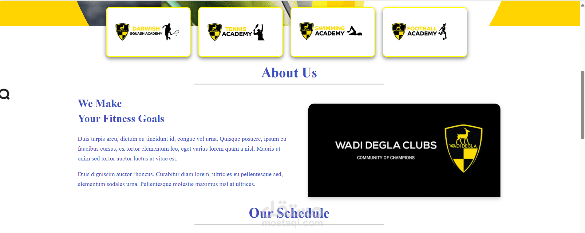 I developed a complete front-end interface for a sports club using HTML & CSS. The project includes a modern header with navigation, a main banner, interactive academy cards, an “About Us” section, a schedule table, a latest news section, a media area (images + embedded video), and an integrated Google Maps location. The design is responsive, user-friendly, and styled with clean layouts and attractive CSS effects.