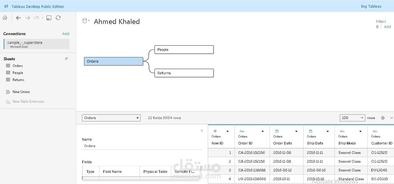 - أنشأت Scatter Plot يوضح العلاقة بين المبيعات والكمية حسب نوع الشحن: First Class - Second Class- Standard Class
