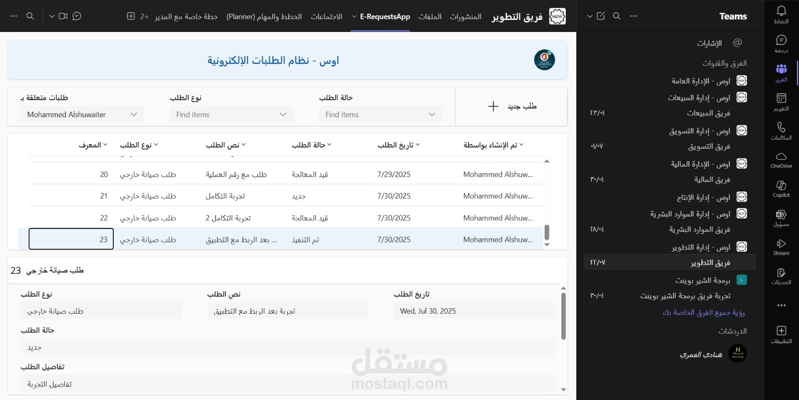 تنفيذ وتدريب الفرق على استخدام Microsoft Teams لإنشاء مساحات عمل موحدة (Workspaces) للإنتاج، المبيعات، والمالية.