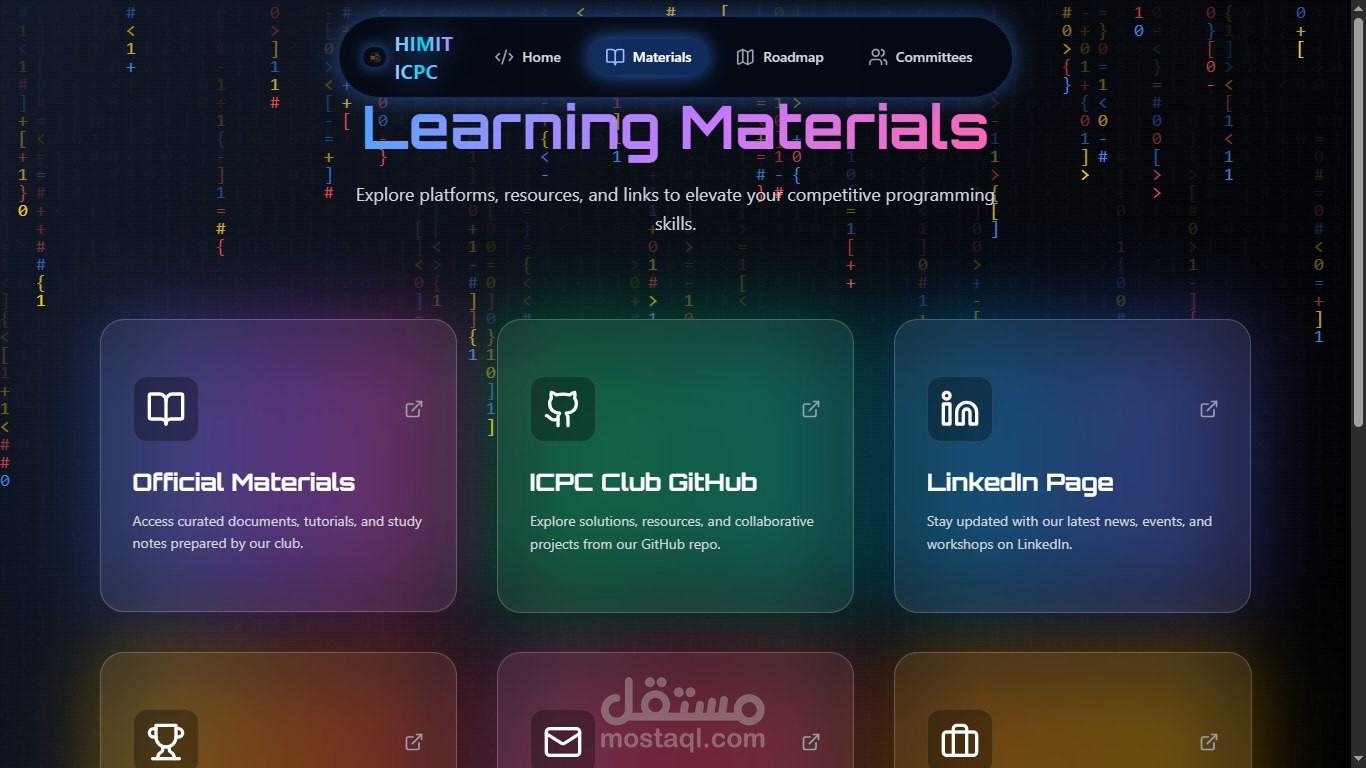 واجهة ديناميكية وحديثة: تأثيرات متحركة سلسة، خلفيات جذابة، وبطاقات تفاعلية للمواد واللجان لتجربة مستخدم ممتعة.