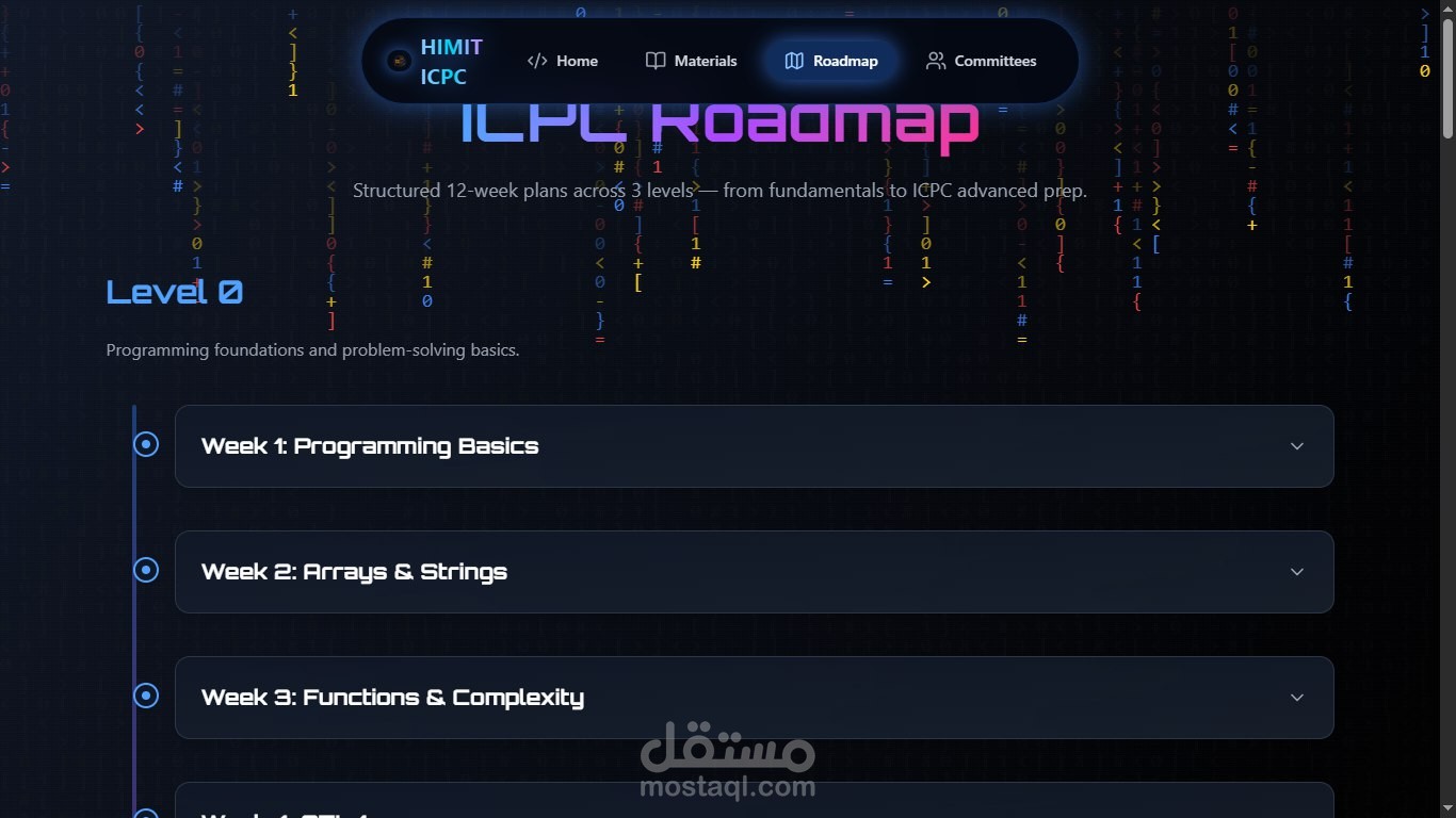 خريطة الطريق التعليمية: تنظيم الدورات والخطط التدريبية على شكل مستويات وأسابيع، مع تفاصيل كل أسبوع، لتسهيل متابعة الطلاب لمسار التعلم.