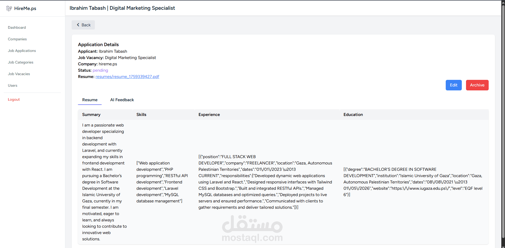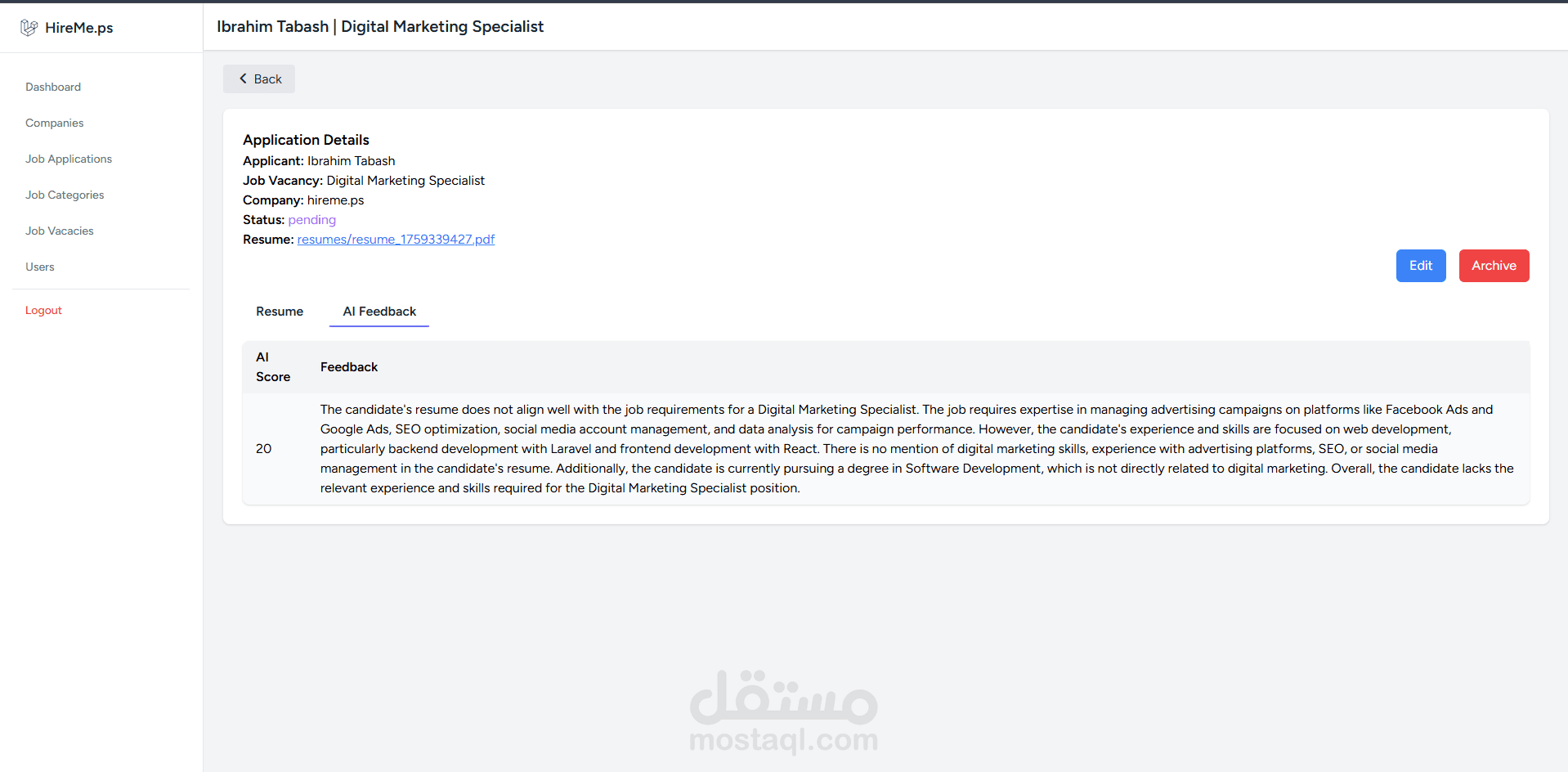 - يولد درجة توافق (0-100%) مع الوظيفة.