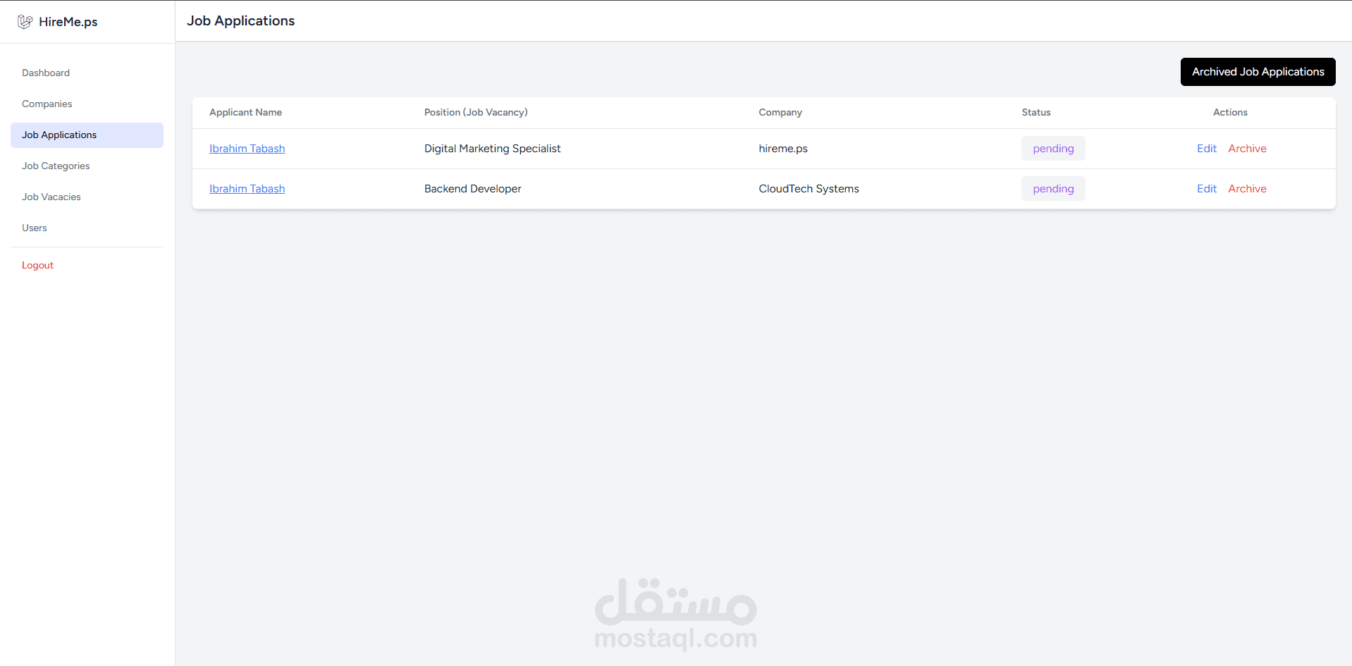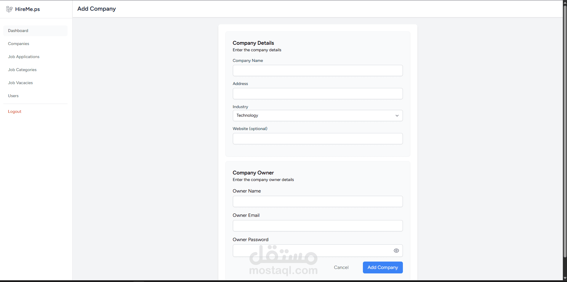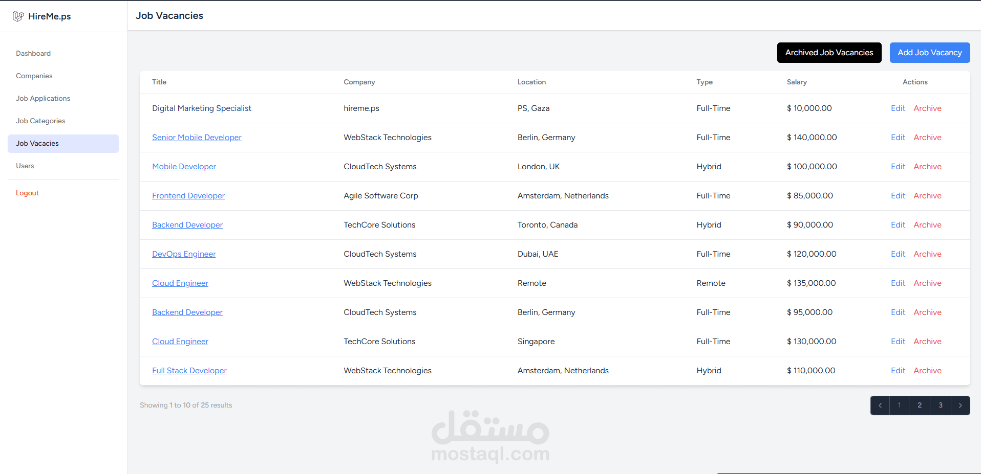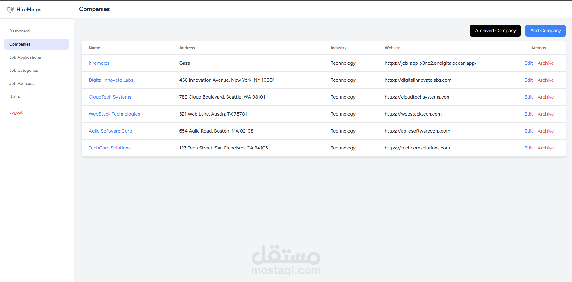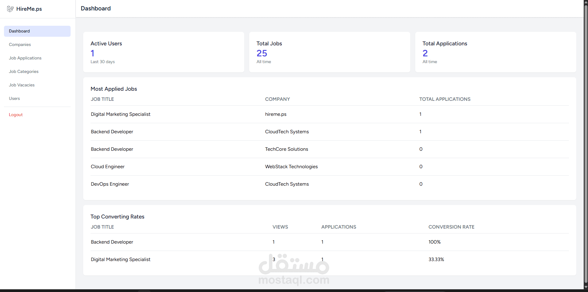 المدير (Admin): الاشراف على المستخدمين و الشركات, واحصائيات شاملة حول النشاط.