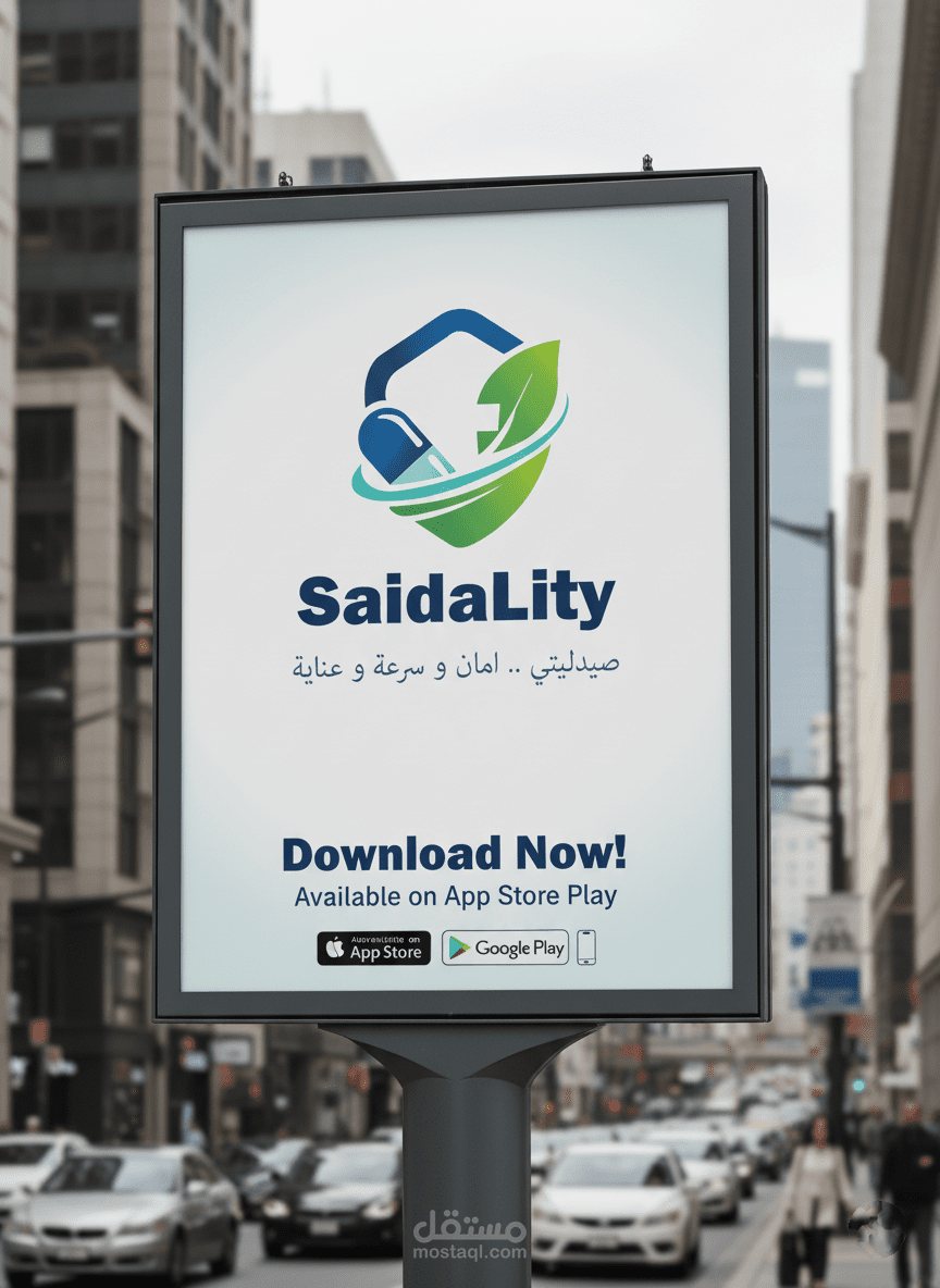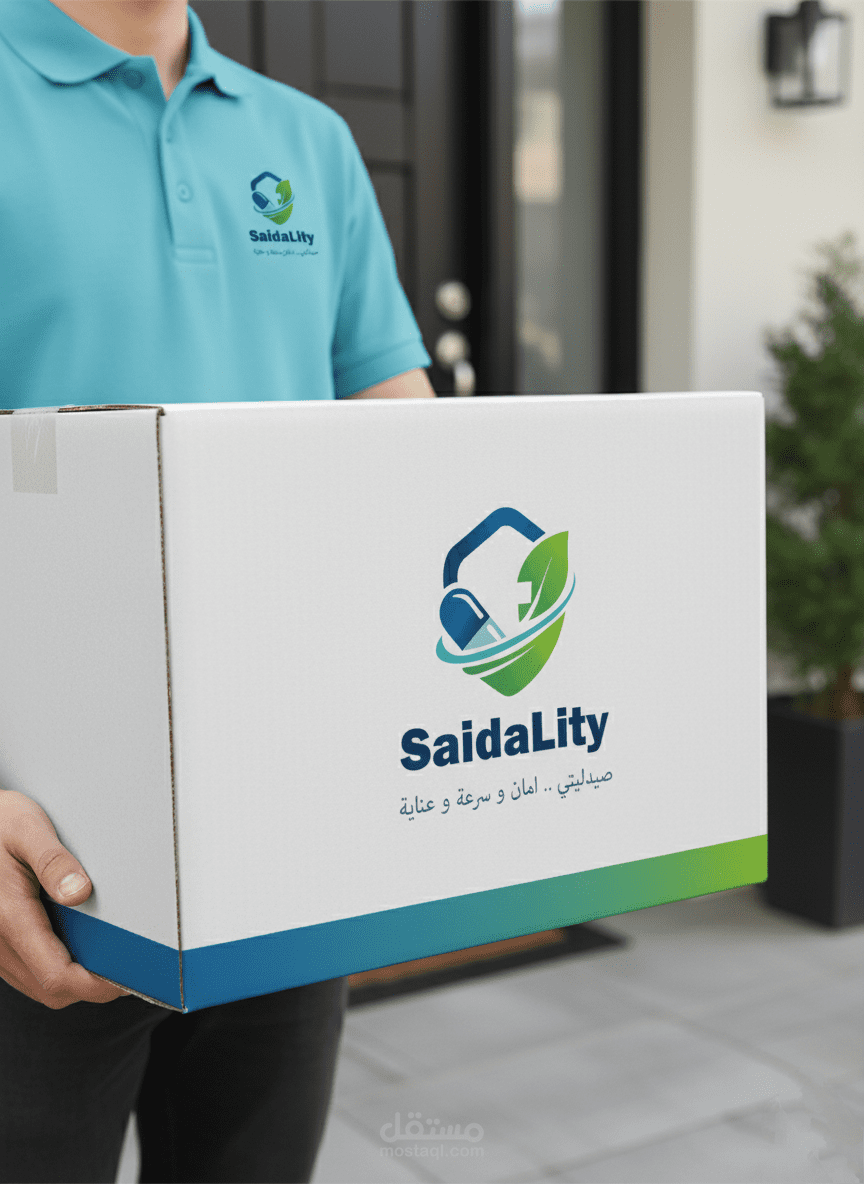 تم تصميم هذا الشعار (اللوجو) لتطبيق "SaidaLity"، وهو تطبيق شامل لخدمات الصيدلية وتوصيل الأدوية ومنتجات العناية بالبشرة، مُوجه لجميع الفئات العمرية.