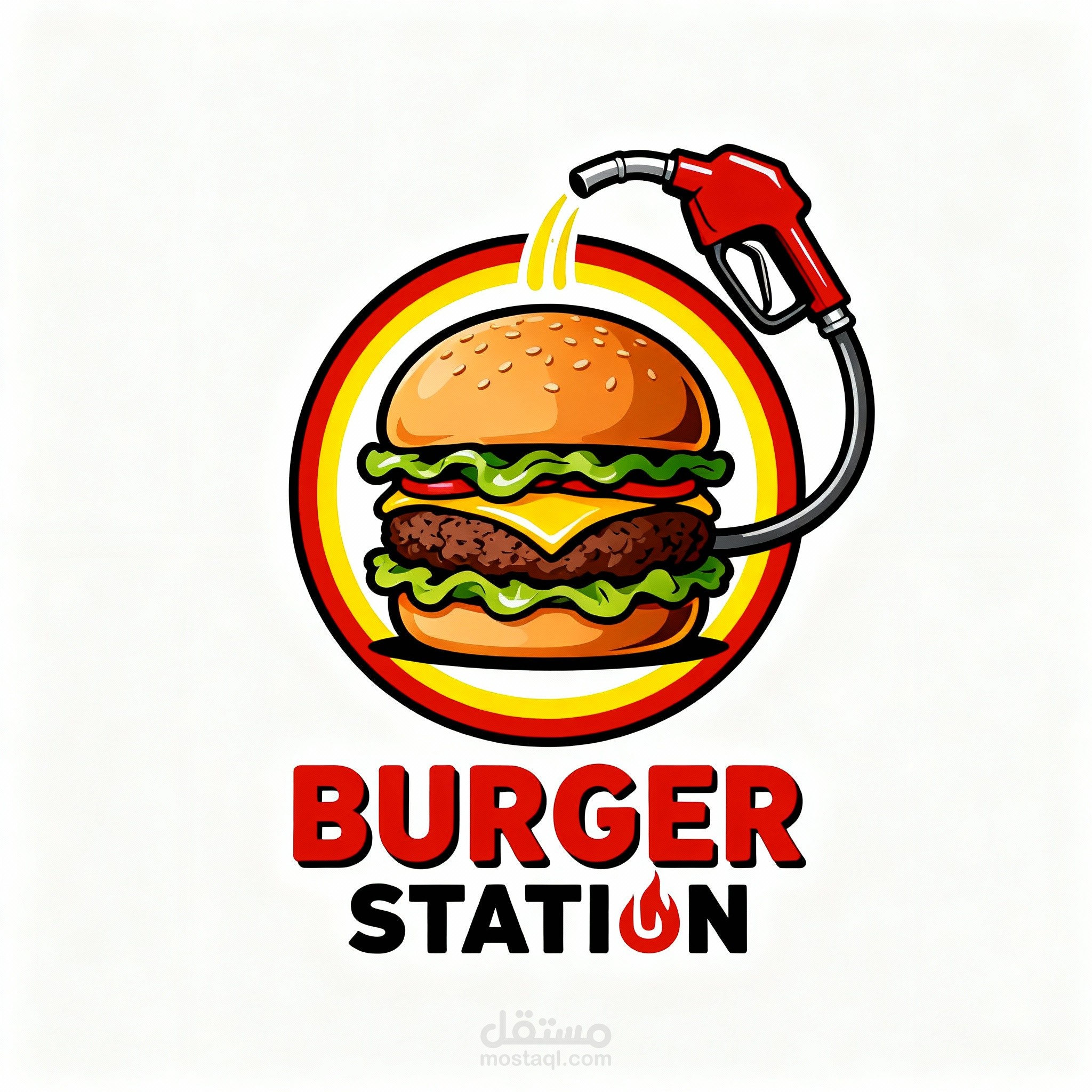 شعار مبتكر مصمم خصيصًا لمطعم "Burger Station".