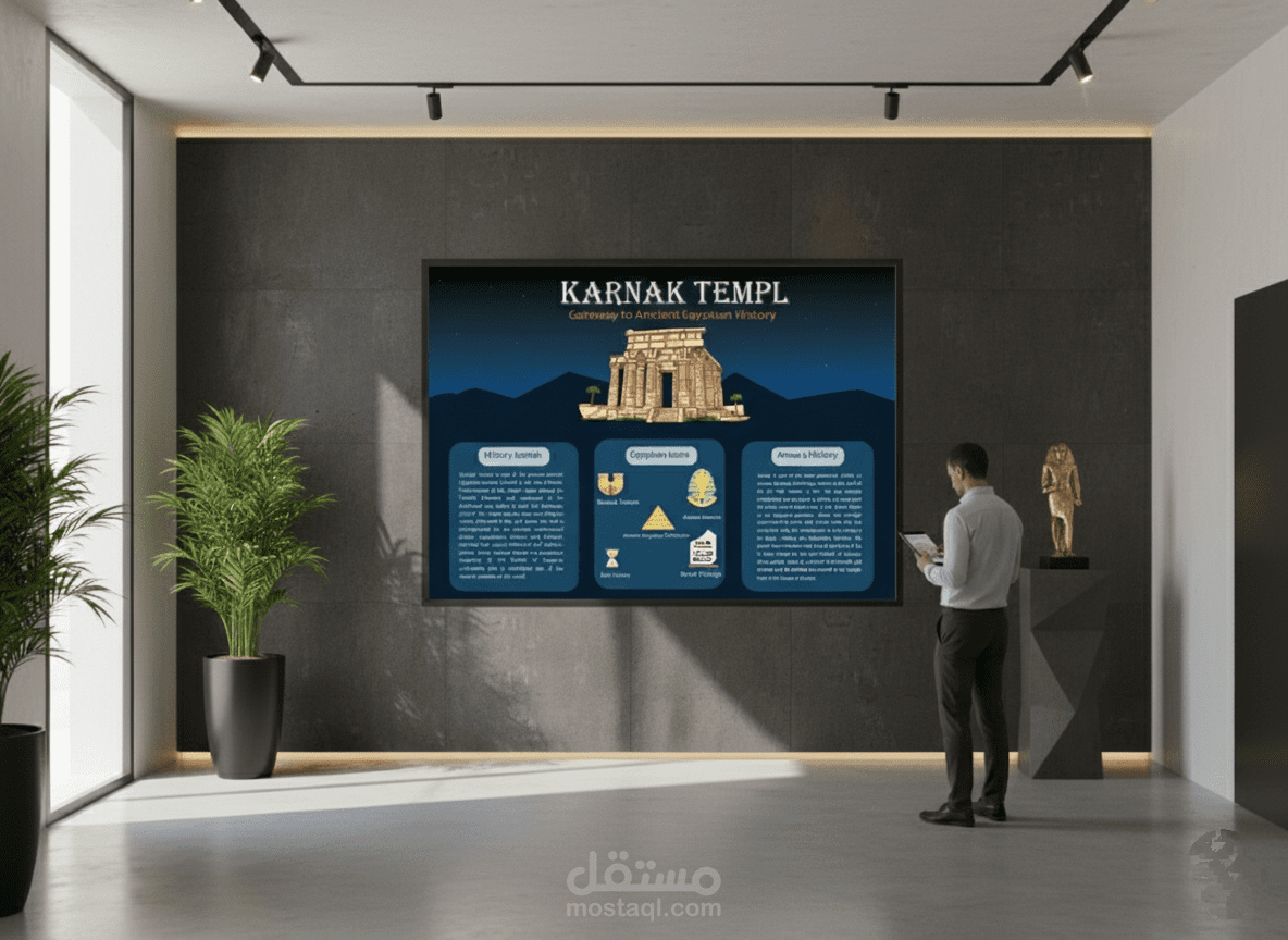 هذا الإنفوجرافيك هو مثال على قدرتي على تحويل المعلومات التاريخية والتعليمية المعقدة إلى محتوى بصري جذاب ومُنظَّم. كان الهدف هو تلخيص تاريخ المعبد وأهم أيقوناته وقصة الإله آمون في تصميم واحد يسهل مشاركته وفهمه.