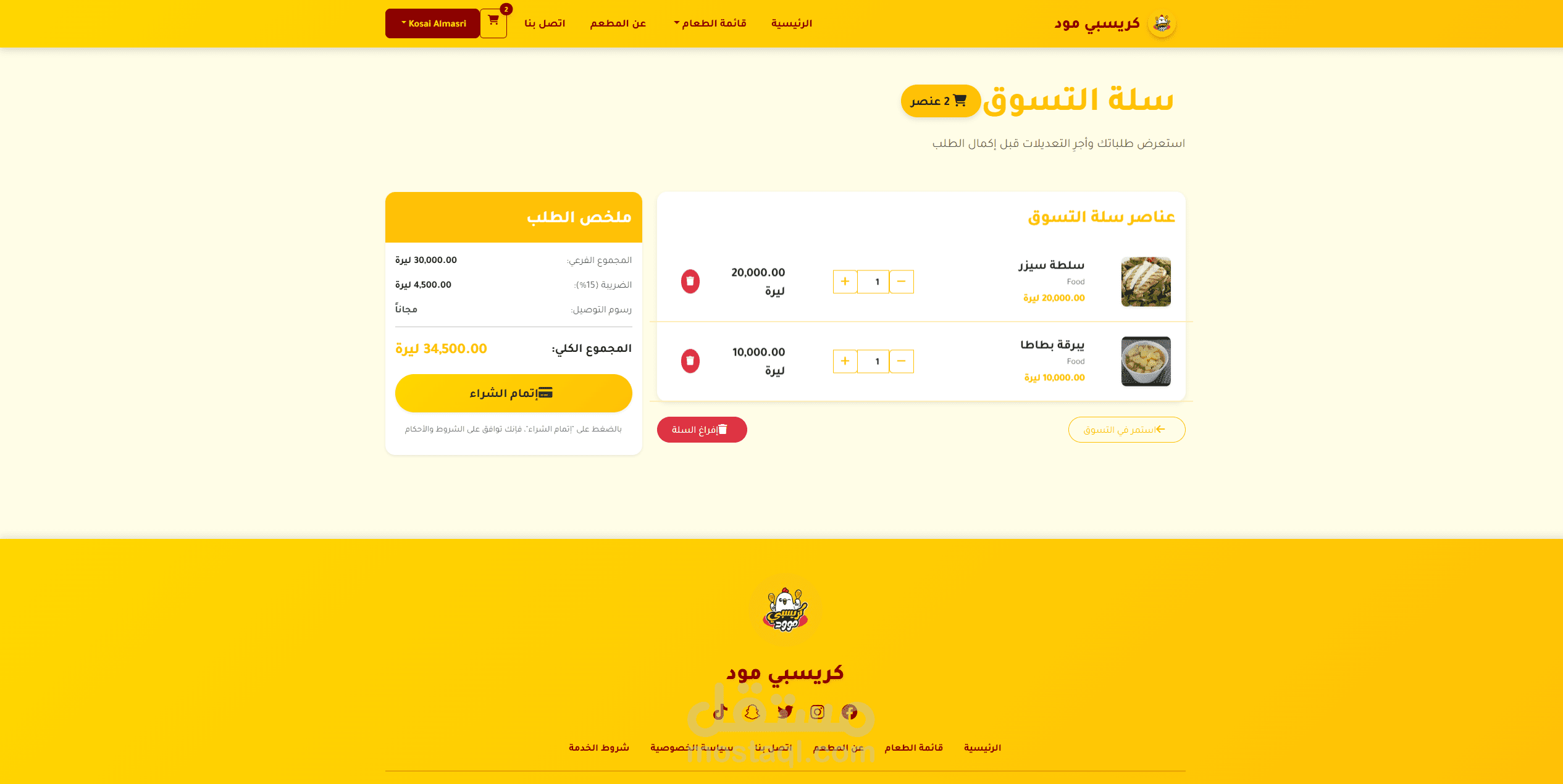 تصميم احترافي يعرض كل المنتجات المختارة مع إمكانية زيادة أو تقليل الكمية.