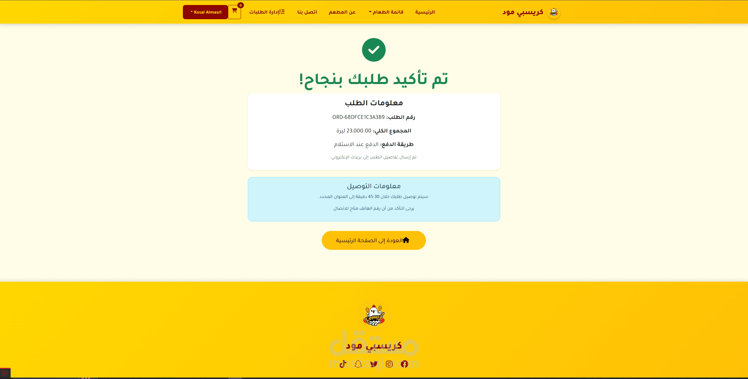 الموقع يعتبر حلاً مثاليًا لأي مطعم أو مطبخ يرغب في إطلاق منصة إلكترونية عصرية لإدارة الطلبات، حيث يجمع بين البساطة والاحترافية، ويتميز بسهولة تطويره وإضافة مزايا جديدة في المستقبل.