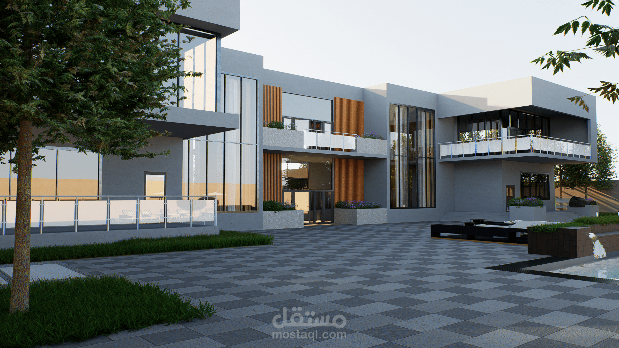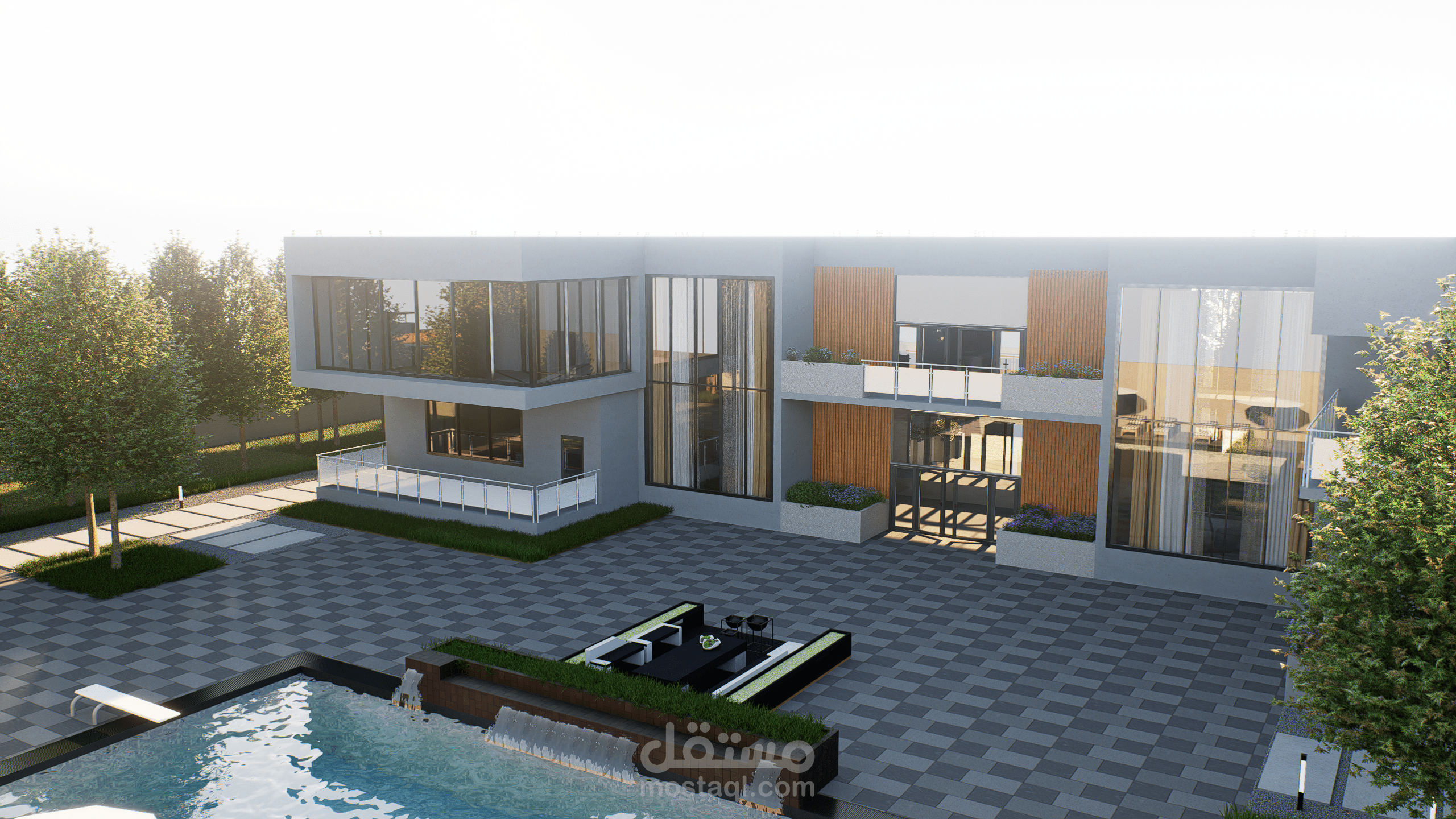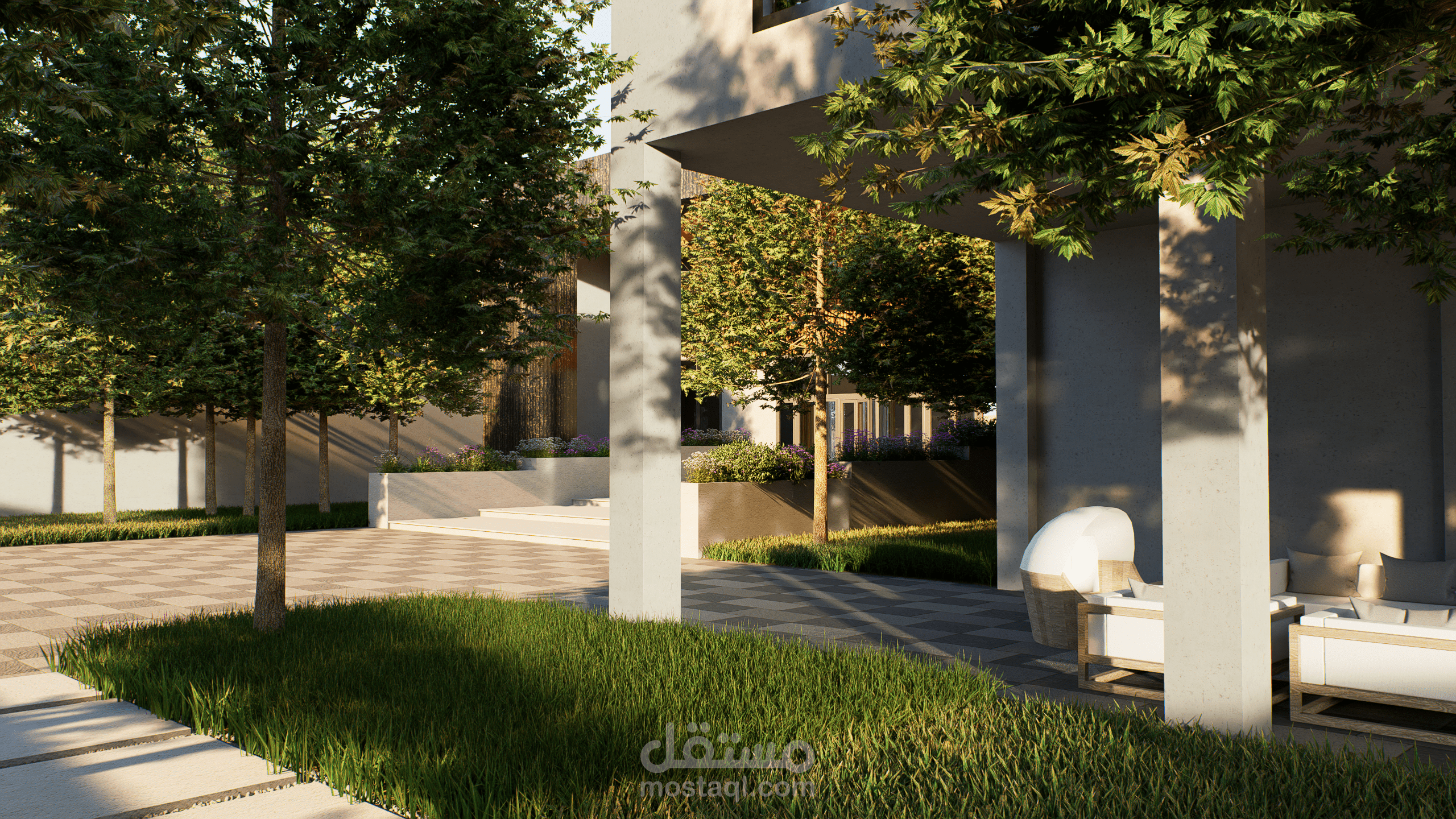 This project is a modern private villa designed to blend minimalist architecture with functional outdoor living. The main idea was to create a strong connection between the house and its surroundings, using clean lines, open facades, and a thoughtful balance between paved areas and greenery