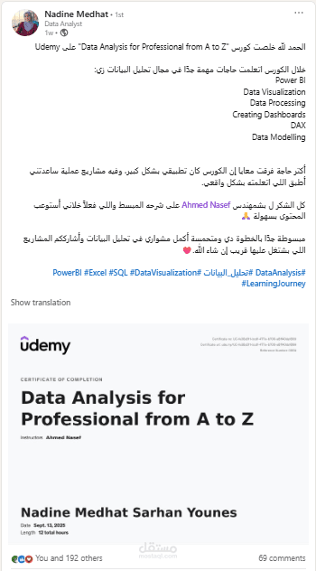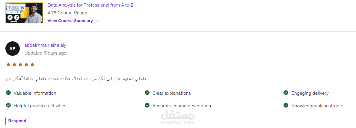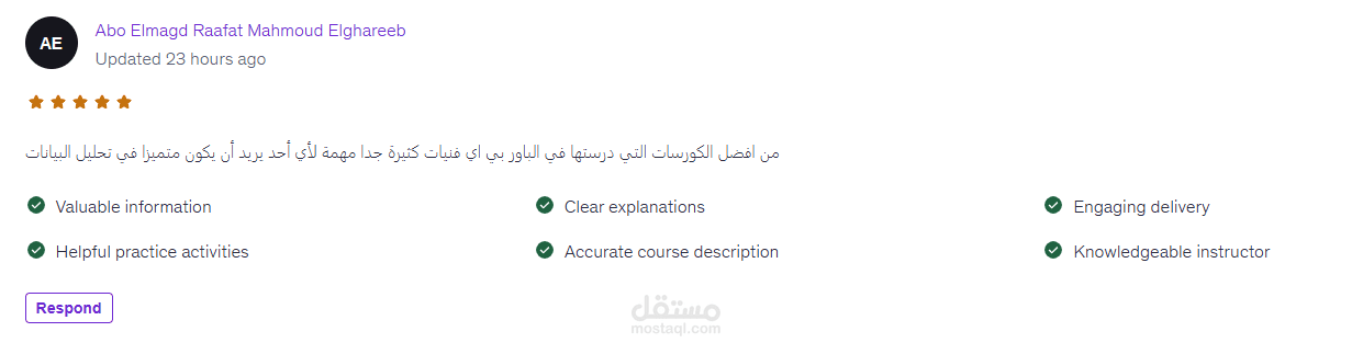 7- الكورس شامل لمشاريع كتير وداتا كتير تقدر تنزلها وتشتغل عليها يا صديقى