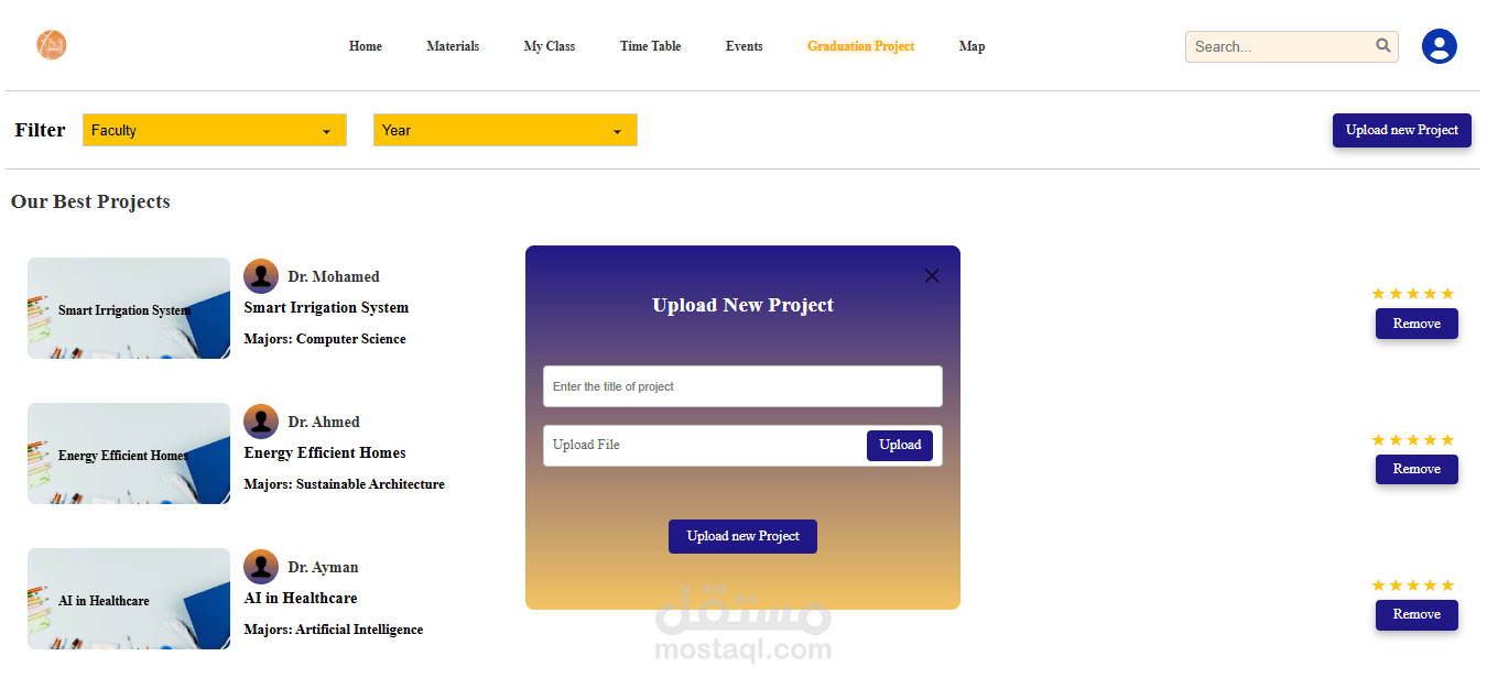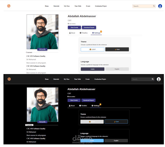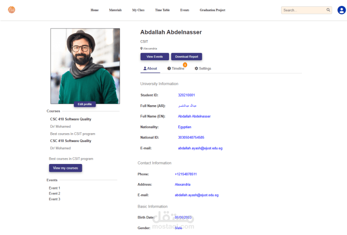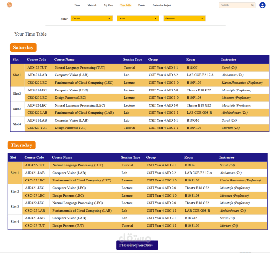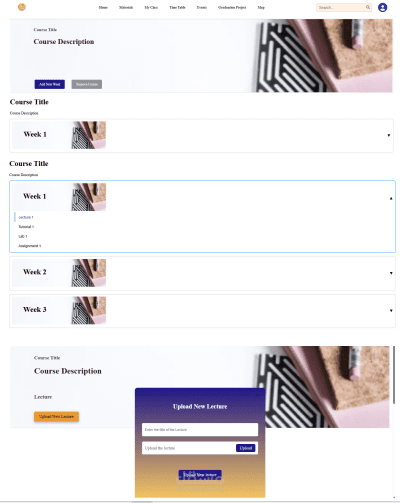 A unified platform that streamlines academic and administrative tasks for students and instructors. It provides course and classroom management, archived material access, graduation project tracking, attendance monitoring, event management, and a built-in chat feature, all in one place. By centralizing these tools into a single system, it enhances efficiency, communication, and collaboration across the university.