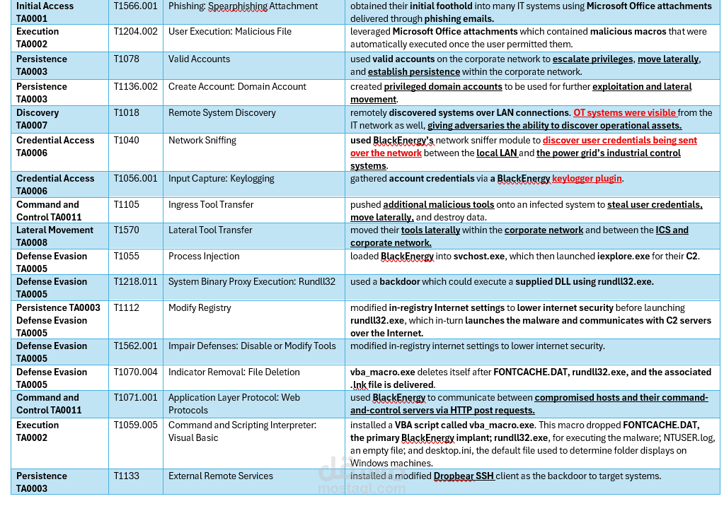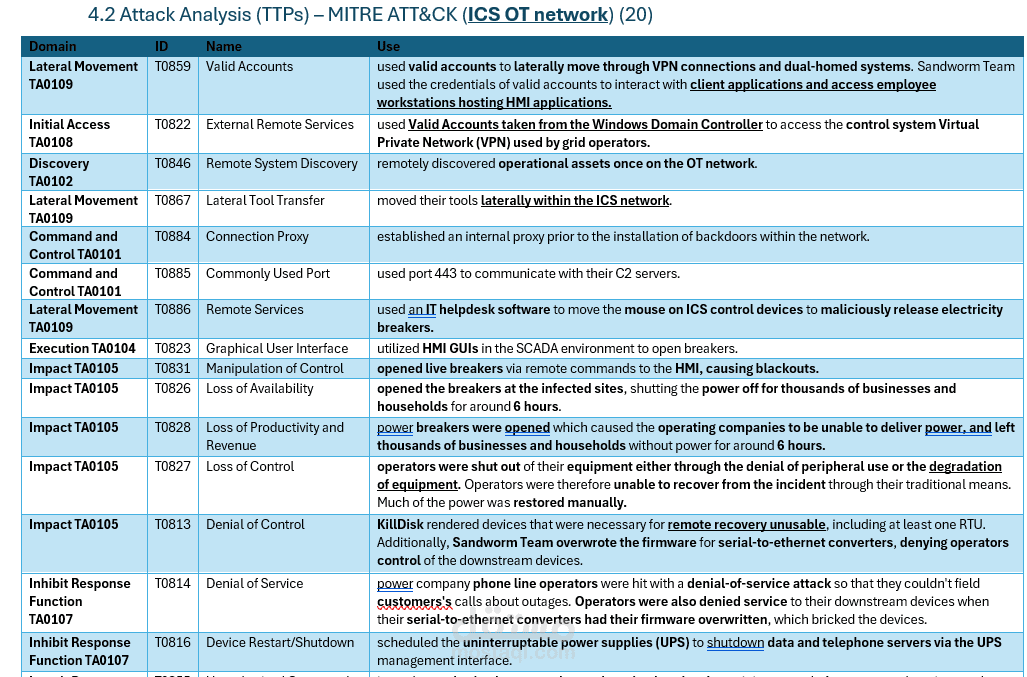 3- تحليل تفصيلي لتقنيات وأساليب المهاجمين (TTPs) عبر بيئتي IT وOT.