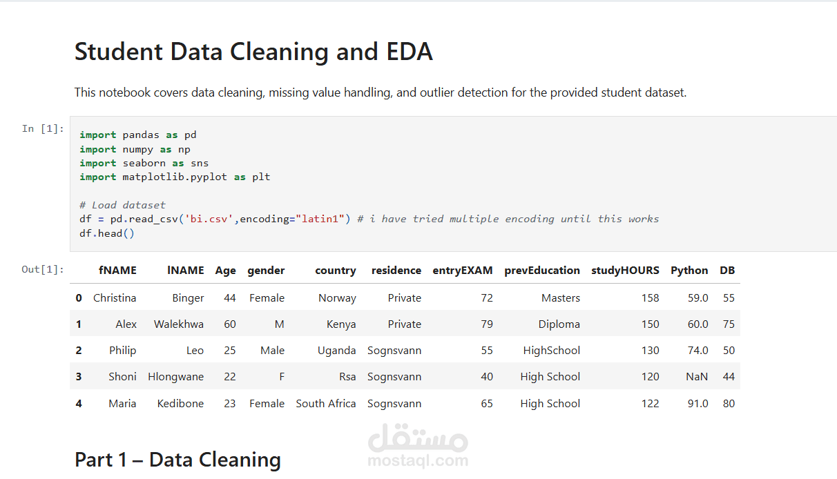 This project is focused on data preprocessing and preparation using a student dataset. The main goal is to transform raw, unstructured data into a clean, well-structured dataset ready for machine learning or statistical analysis. It demonstrates the complete data preparation pipeline — one of the most important steps in any data science project.
