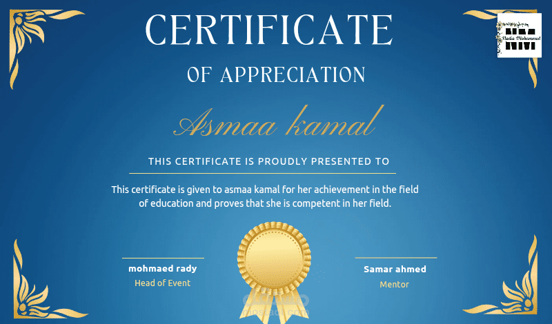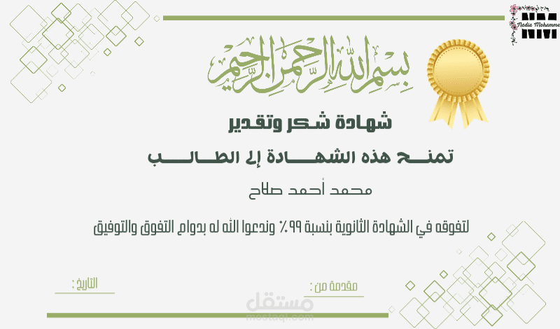 في هذة الخدمة أُقدم شهادة تقدير وشكر إحترافية وفي وقت وجيز جدا باذن الله وتعديلات حتي تمام الرضا
