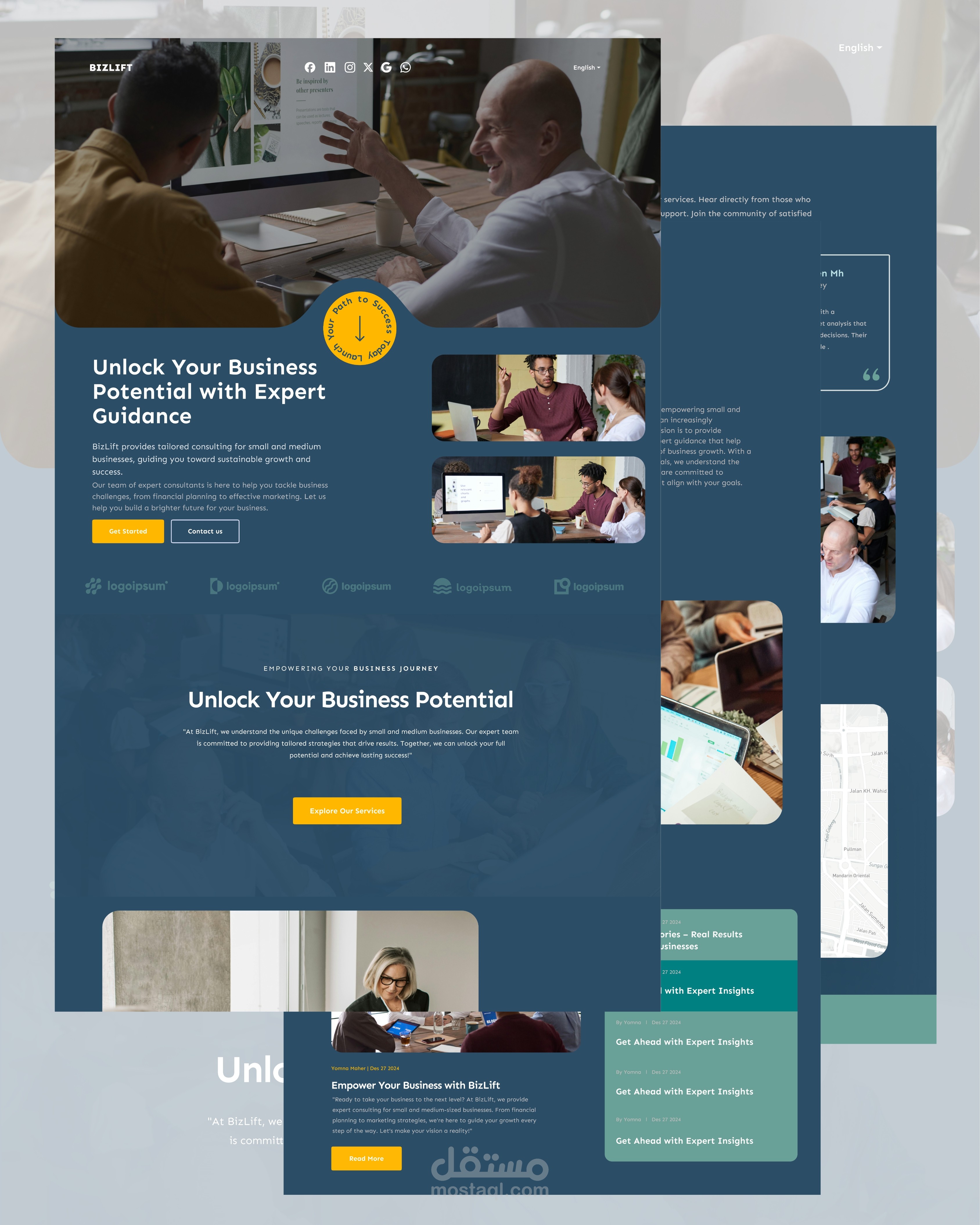 تصميم واجهة لموقع استشاري مخصص لدعم الشركات الصغيرة والمتوسطة.