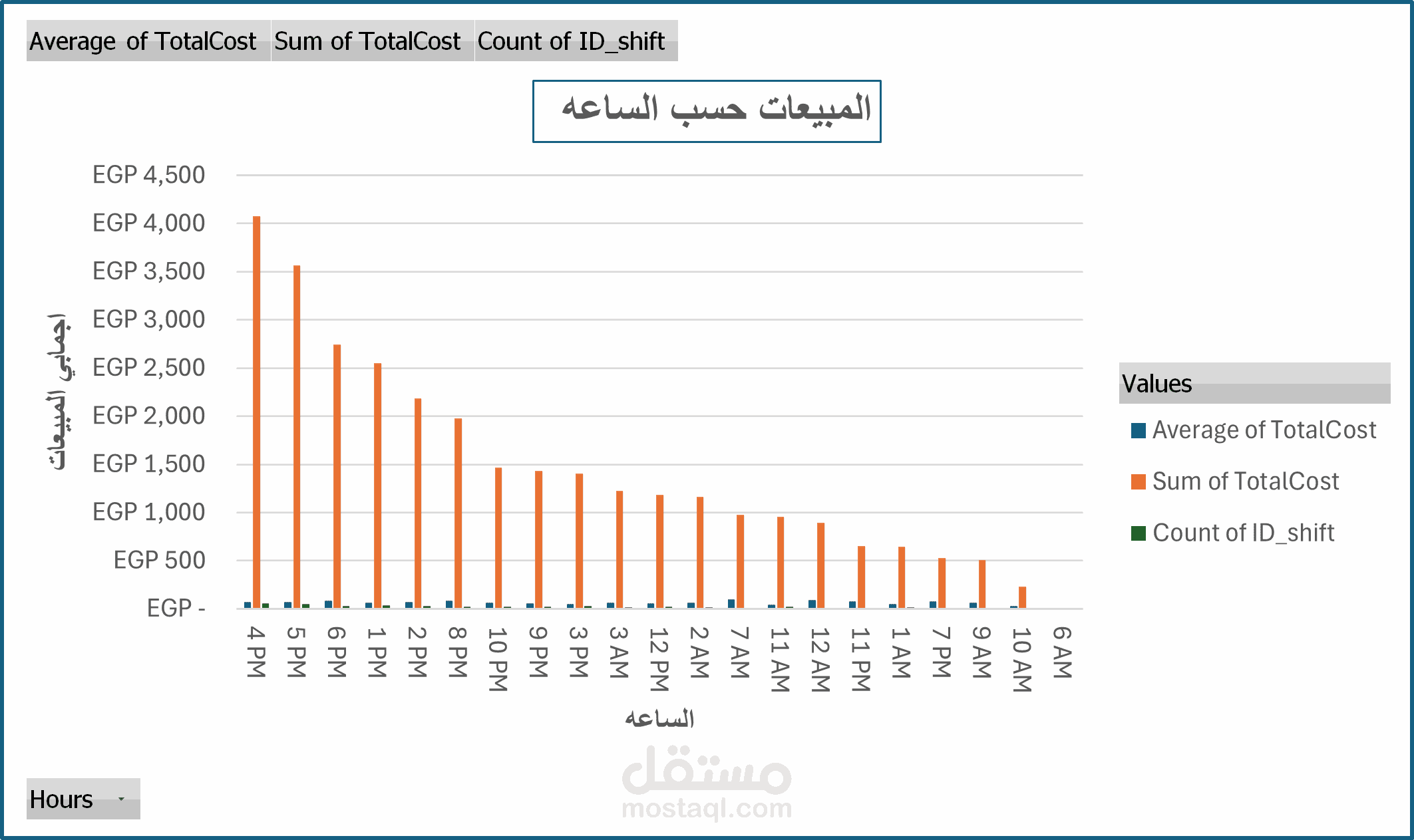 شمل العمل تنظيف البيانات، وإنشاء جداول محورية (Pivot Tables) ورسوم بيانية لتحليل أهم مؤشرات الأداء مثل: