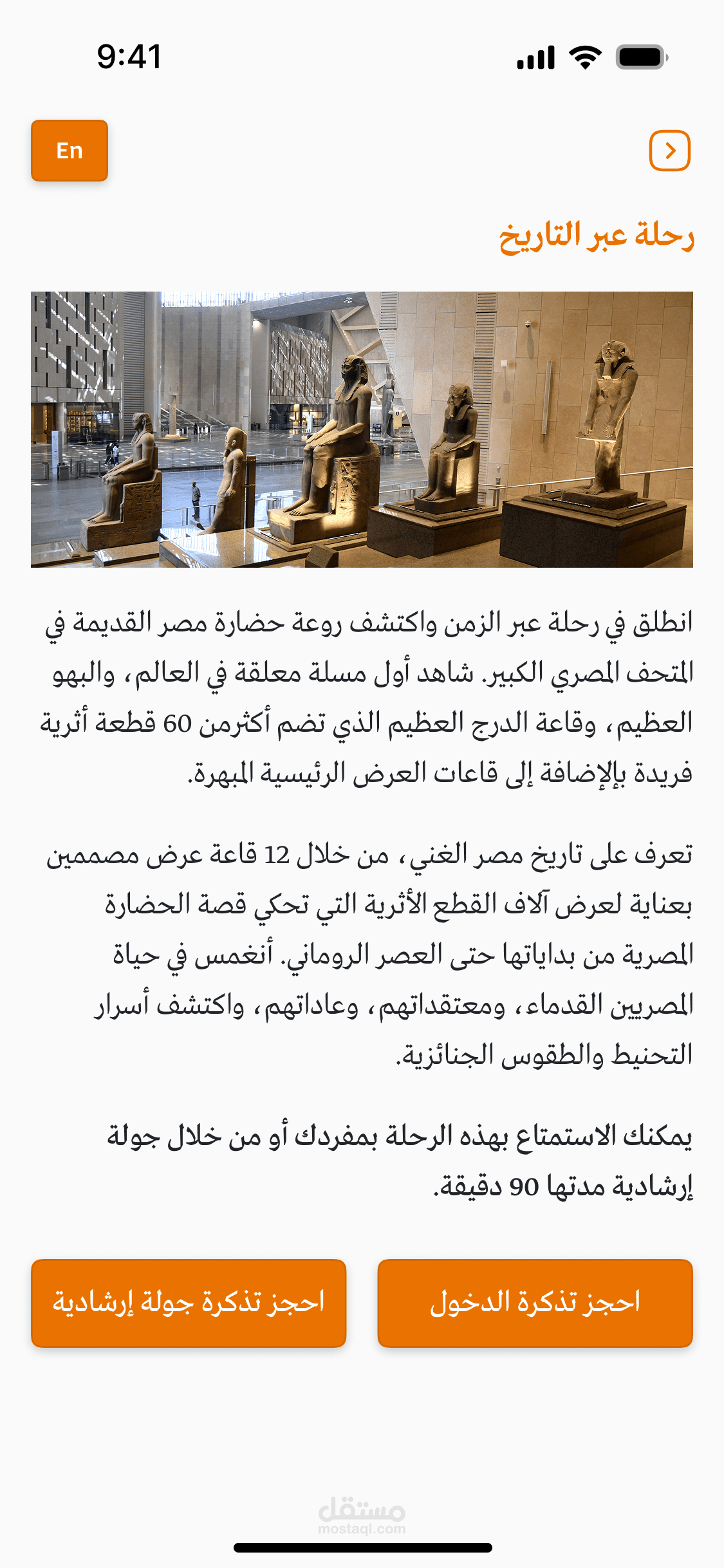 أقوم بتصميم وتطوير واجهة مستخدم وتجربة مستخدم UI/UX لتطبيق ويب وموبايل يحاكي تجربة الموقع الرسمي للمتحف المصري الكبير، مع التركيز على سهولة الاستخدام وتقديم تجربة ثقافية وسياحية حديثة.