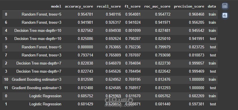 نموذج Decision Tree حقق 82% دقة مقابل 73% في معظم المحاولات من باقي المشاركين علي موقع Kaggle.