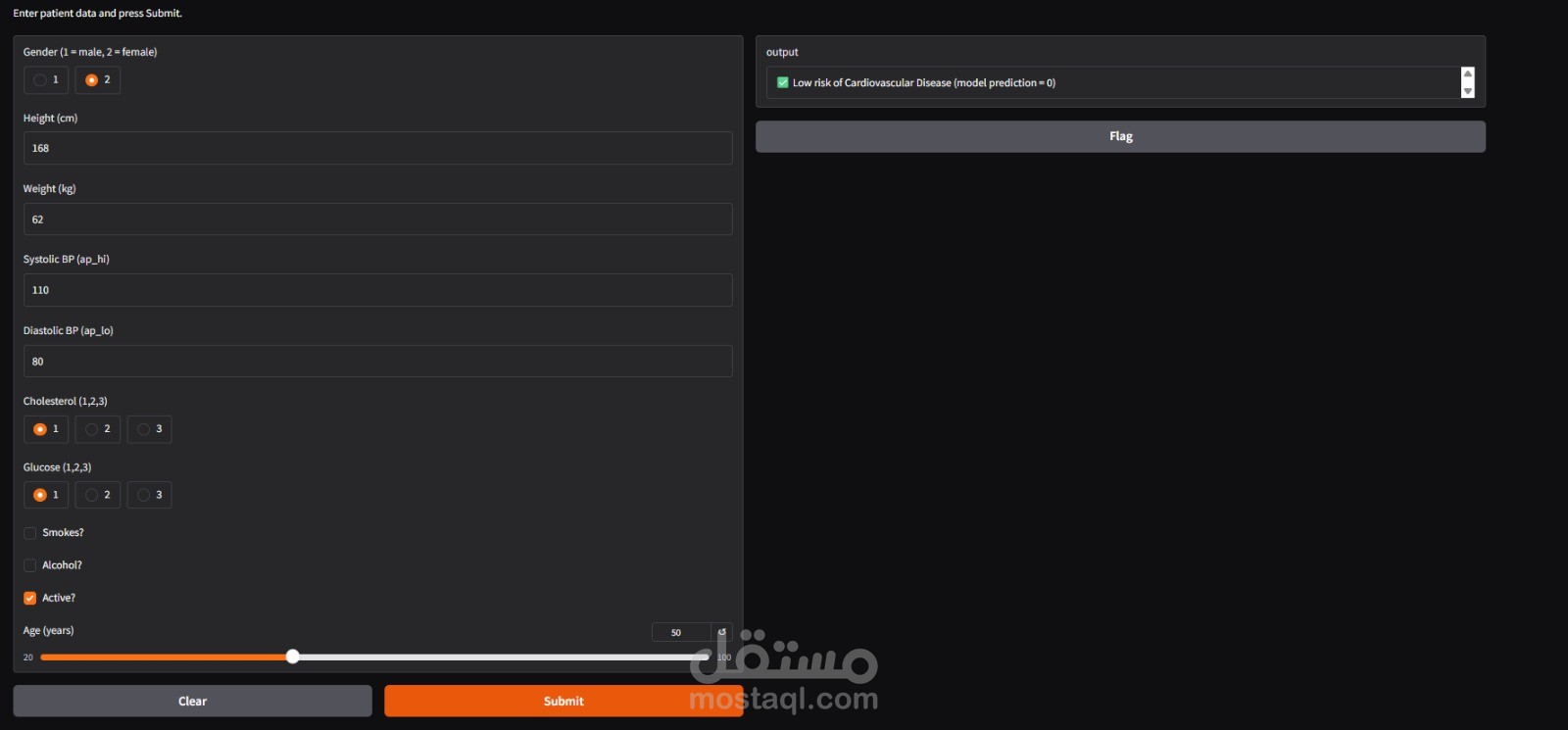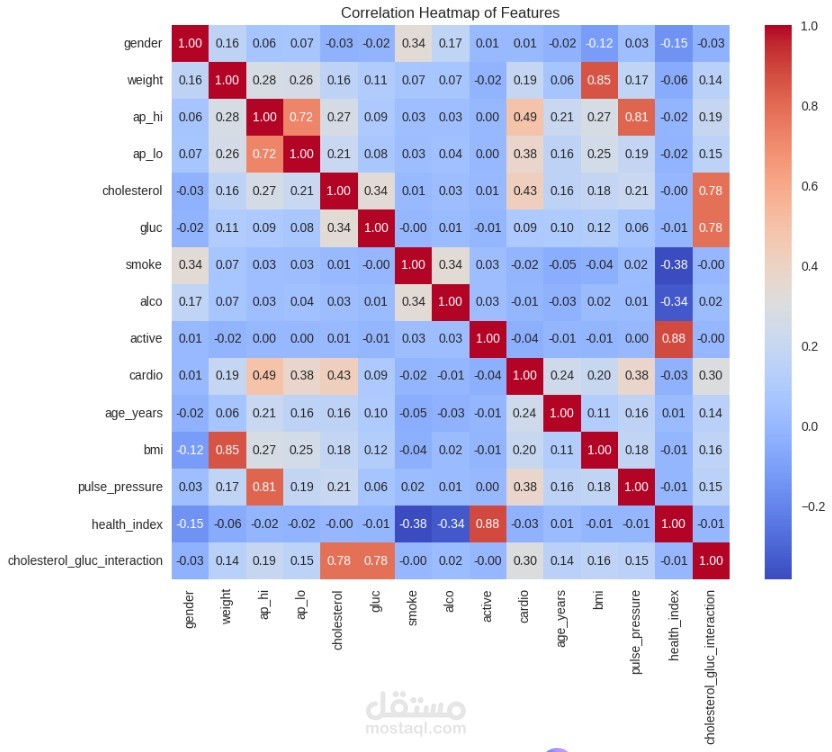 مشروع يعتمد على خوارزميات تعلم الآلة لتحليل بيانات المرضى والتنبؤ باحتمالية الإصابة بأمراض القلب.
