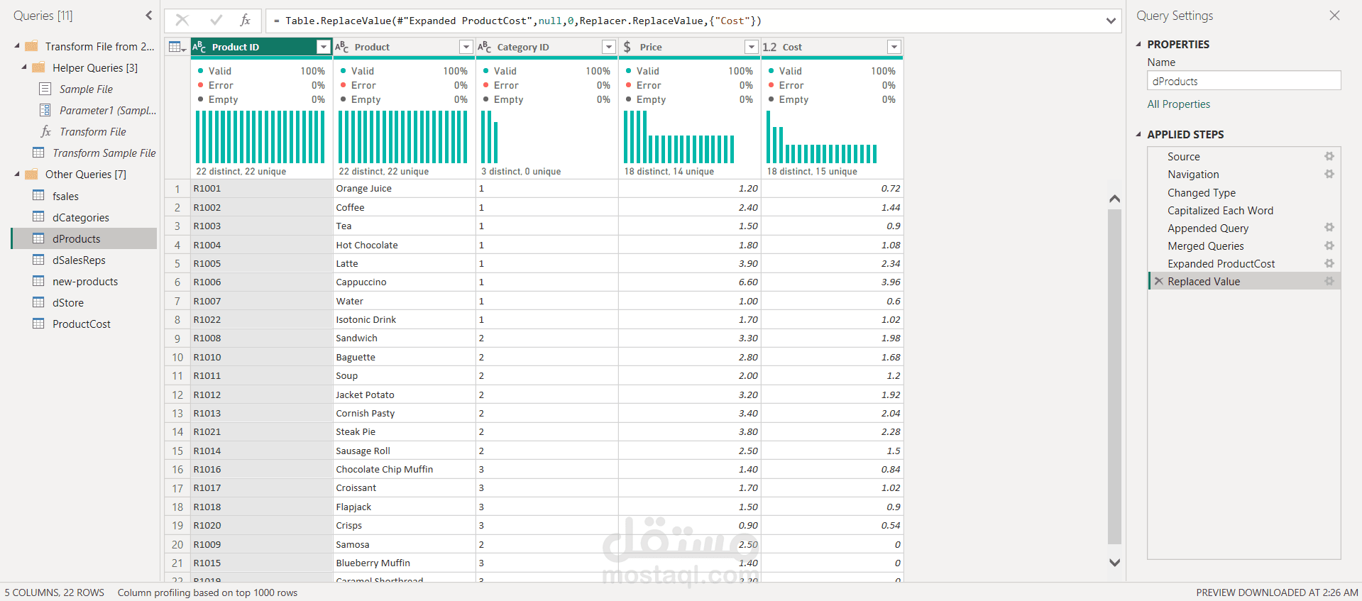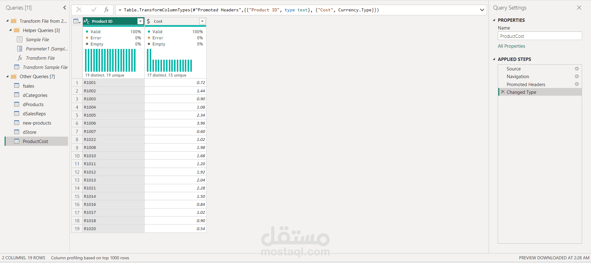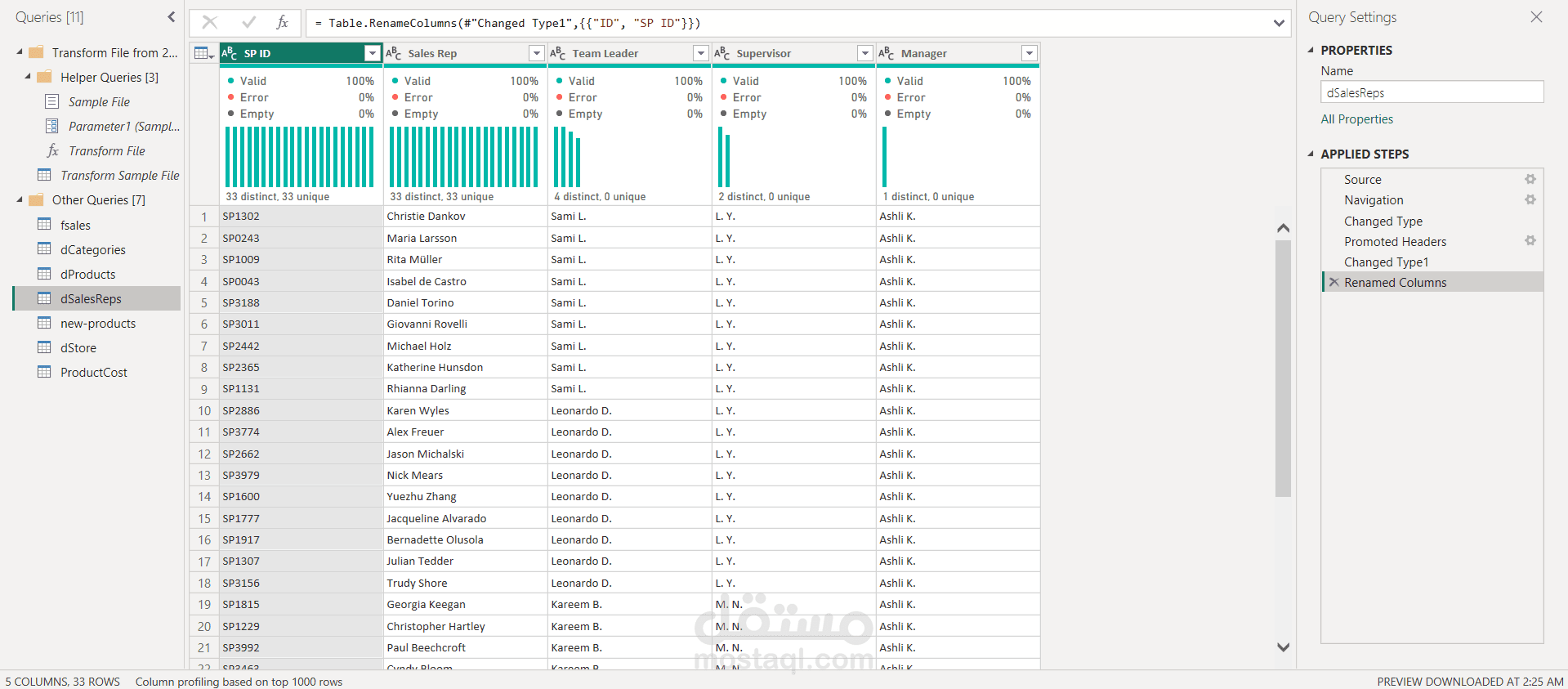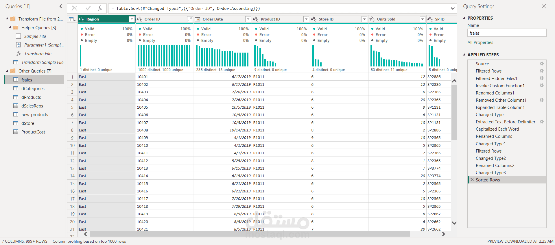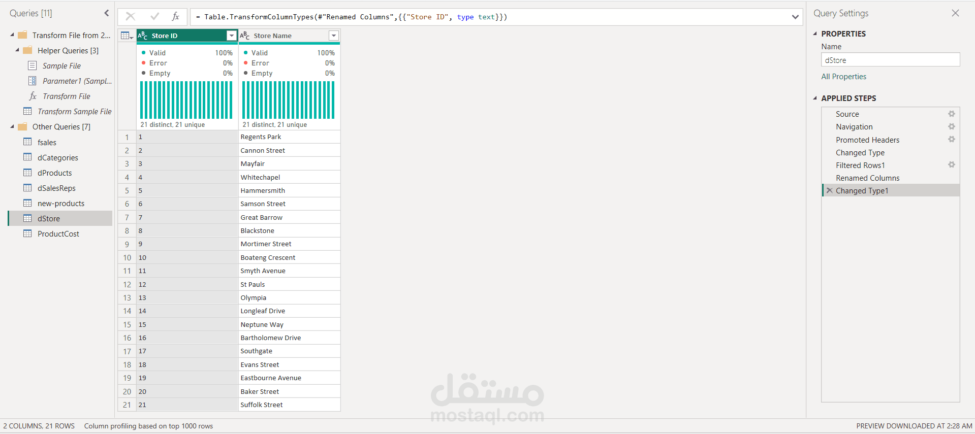 اعتمد المشروع على Power Query في تنظيف البيانات وتحويلها، وتم إنشاء نموذج بيانات (Data Modeling) متكامل يربط بين جداول المبيعات والعملاء والمنتجات لدعم التحليل بكفاءة. كما تم تطوير معادلات DAX لاحتساب مؤشرات الأداء مثل نسب النمو، ومتوسطات الإيرادات، وتحليل الفروق بين الفترات الزمنية.