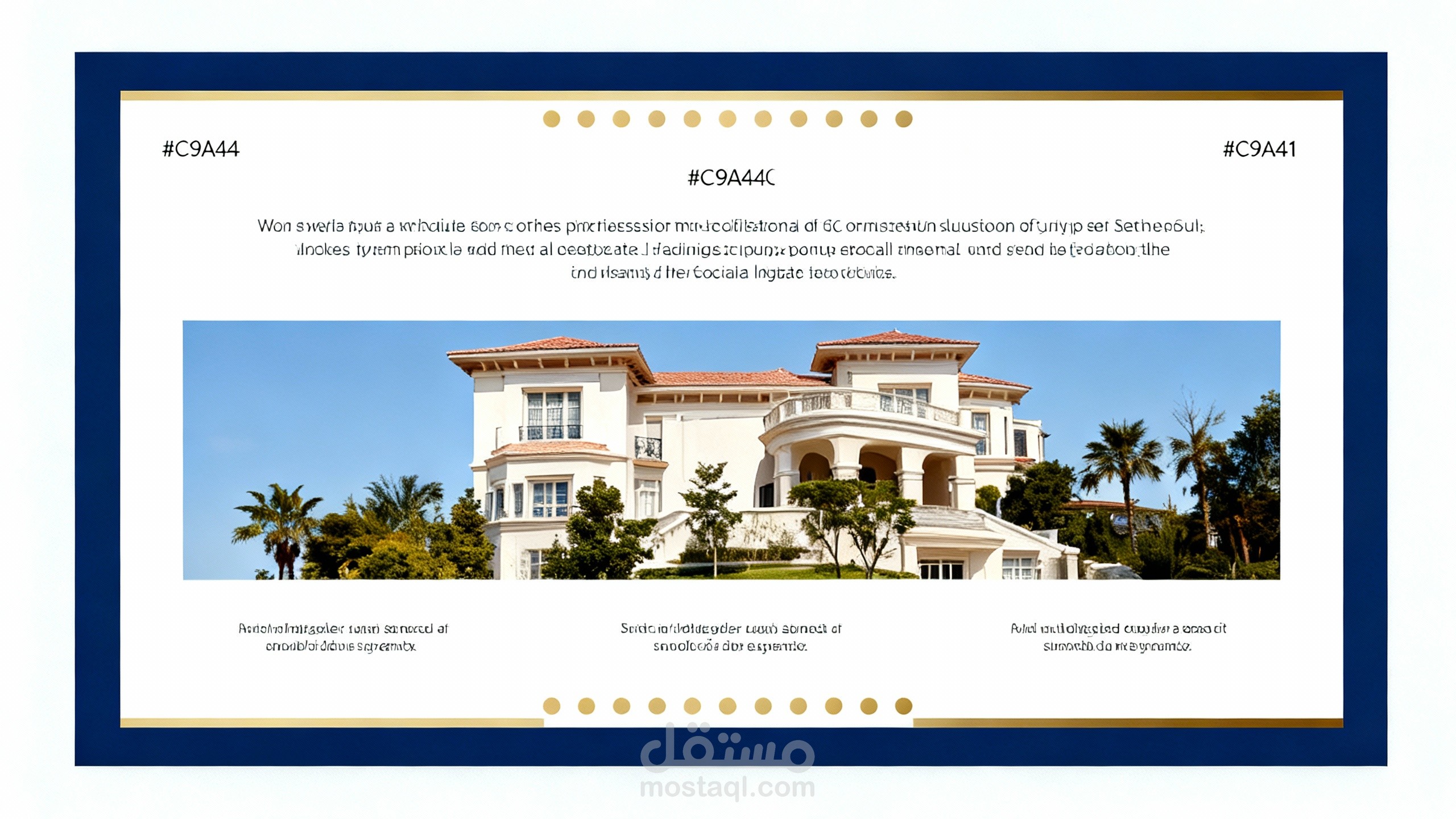 - لوحة ألوان فاخرة تجمع بين الذهبي الملكي والأزرق الكحلي العميق لتمثيل الفخامة والاحتراف.