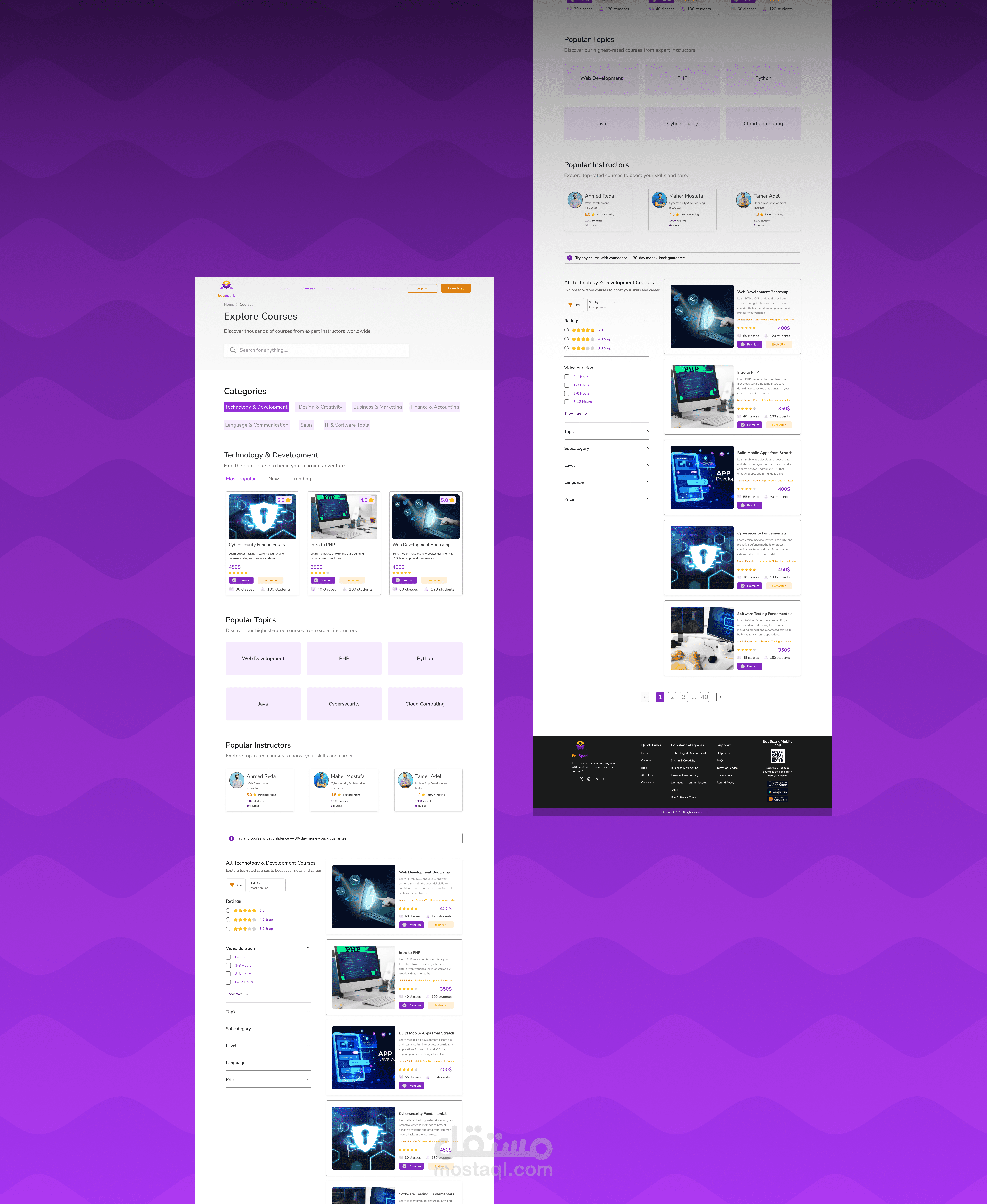 ركزت في التصميم على إبراز المحتوى التعليمي بطريقة منظمة تشجع المستخدم على استكشاف الدورات بسهولة.