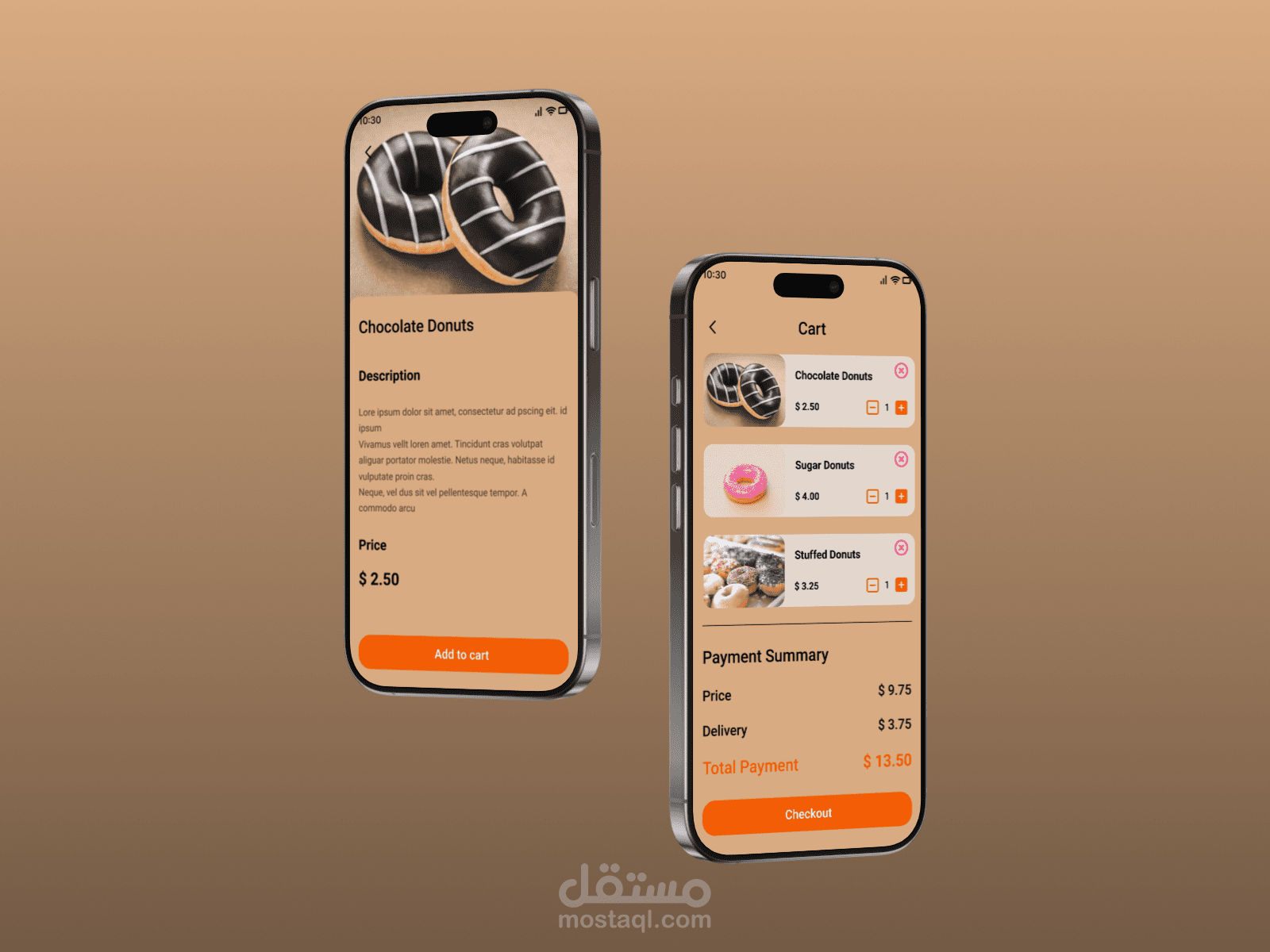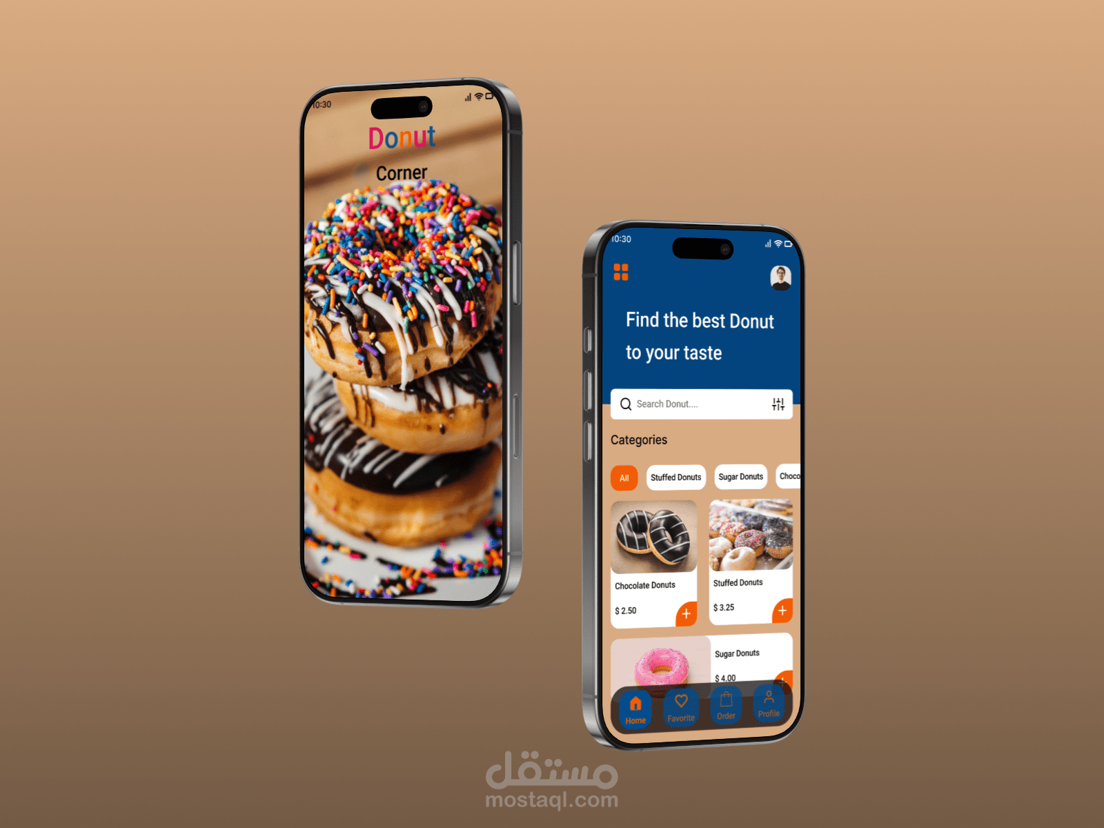 تصميم واجهة مستخدم لتطبيق Donut Corner يهدف إلى تقديم تجربة فريدة لمستخدمي التطبيق في استكشاف وطلب منتجات دوناتس بسهولة وجاذبية بصرية. التصميم يرتكز على الألوان الزاهية والتنسيق الجذاب الذي يعكس هوية العلامة التجارية ويشجع المستخدم على التفاعل.