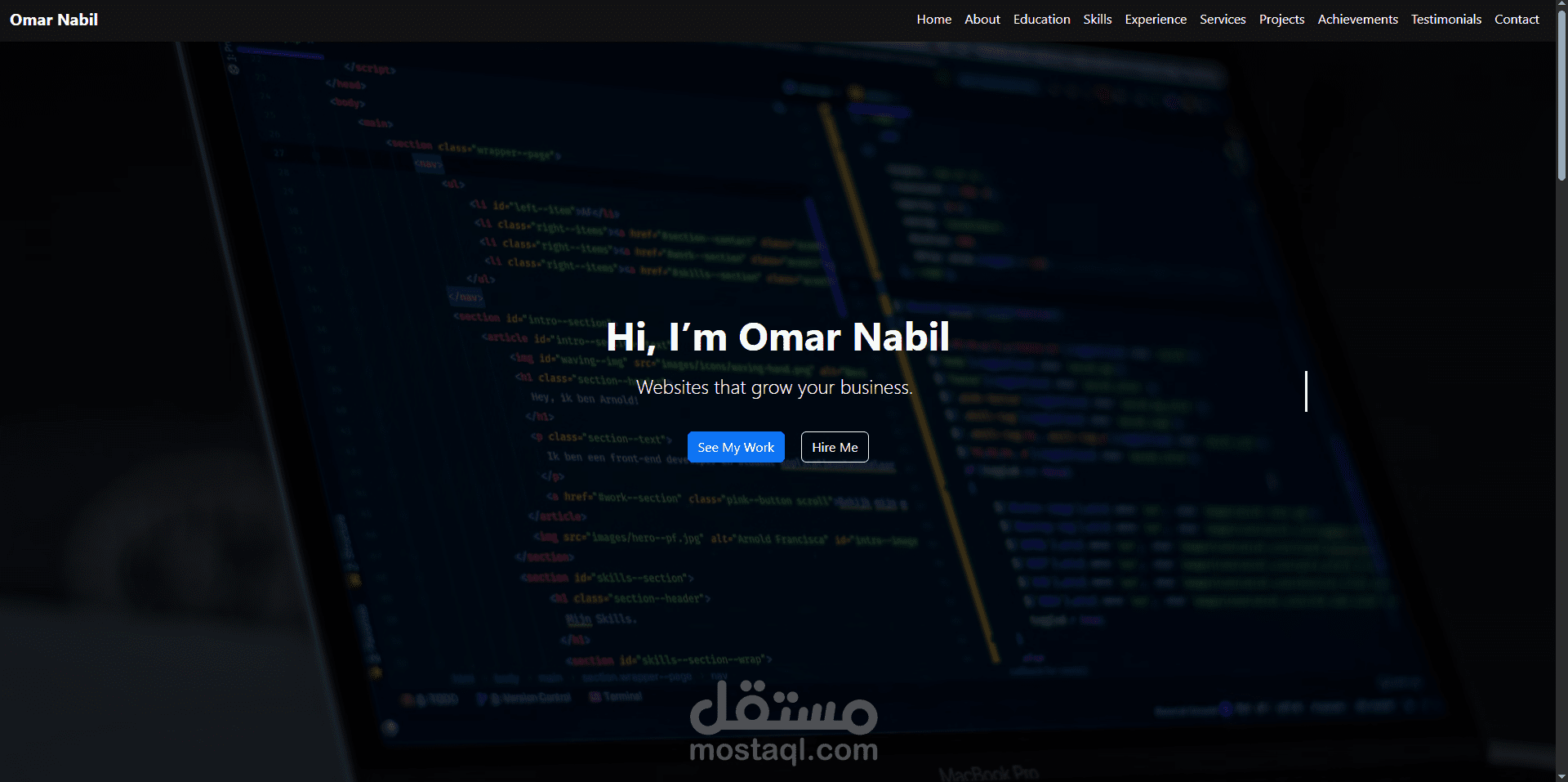 القسم التعريفي (Hero Section): لتقديم نبذة سريعة عني وعن رؤيتي ("Websites that grow your business").